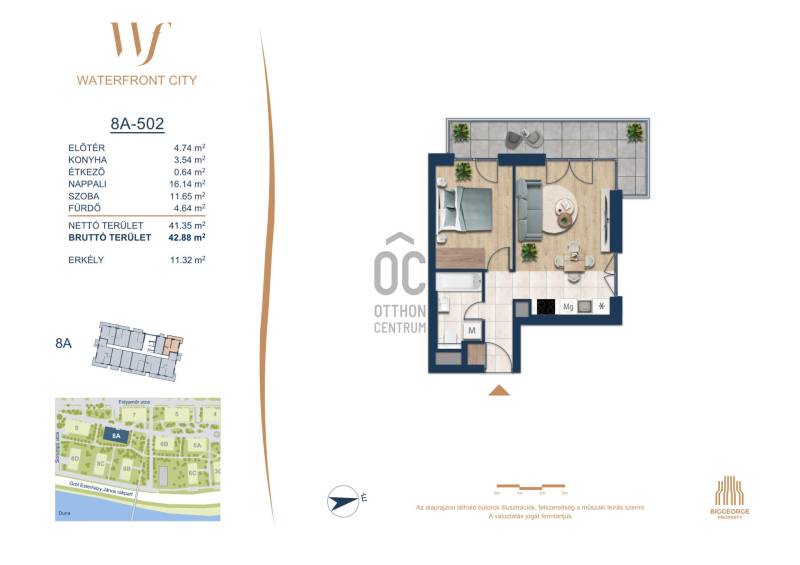 Projekt bemutatásaA projektrőlA Waterfront City egy új, modern városnegyed a 3. kerületben, ahol a természet közelsége és a városi kényelem tökéletes egyensúlyban van. A Duna-part közvetlen szomszédságában elhelyezkedő fejlesztés különleges atmoszférát kínál: a sétányt új épületek határolják, üzletekkel, kávézókkal és szolgáltatásokkal, amelyek élhető közösségi teret teremtenek.A 13 emeletes lakóépületből lenyűgöző örökpanoráma nyílik a budai hegyekre és a folyóra, a tágas teraszok pedig ideálisak a pihenéshez vagy a baráti összejövetelekhez. A zöldtetők, parkosított terek és fenntartható megoldások – mint az energiatakarékos rendszerek és okos otthon funkciók – mind hozzájárulnak a modern, környezettudatos életstílushoz.Látogass el értékesítési irodánkba, és tekintsd meg a városnegyed makettjét személyesen! Ismerd meg, milyen lesz az élet Budapest egyik legizgalmasabb új fejlesztésében!Óbuda szívébenKépzeld el, ahogy egy napsütéses délelőttön Óbuda szívében sétálsz, a Duna közelsége frissítően hat rád, miközben a Folyamőr utca, a Miklós tér és a Bogdáni út által határolt, öt hektáros területre érsz. A levegőben ott van a város történelme, mégis minden részletében a jövő hívogat.A 50 000 négyzetméteres területen egy hangulatos sétány vezet végig, amely egyenesen az óbudai Fő térre visz – mindössze 600 méterre. Ez a sétány nem csupán összeköt, hanem élményt nyújt: a Kolosy térről induló Óbudai Promenád részeként a város egyik legélhetőbb, legpezsgőbb szakaszán haladsz végig. És ha biciklivel érkeznél? A nemzetközi kerékpárút is itt halad el, Szentendre felé vezetve.Az 5. ütemben épülő 149 lakás mindegyike egyedi hangulatot kínál. Ahogy belépsz egy-egy otthonba, a hatalmas üvegfelületeken át beáradó fény és a tágas, szellős terek azonnal magukkal ragadnak. A kilátás? A Kaszap István park zöldje nyújt békét, míg a felsőbb emeletekről a Budai-hegység örökpanorámája tárul eléd – minden nap egy új festmény az ablakodban.A 6. ütemben 316 modern lakás épül, tágas teraszokkal és lenyűgöző kilátással a Dunára és a budai hegyekre. A lakók kényelmét őrszolgálat, kamerarendszer, mélygarázs, vendéglátóhelyek, belső park, játszótér és E-autó töltők szolgálják. Ez a projekt utolsó üteme, amely még közvetlen Duna-parti kapcsolattal rendelkezik.