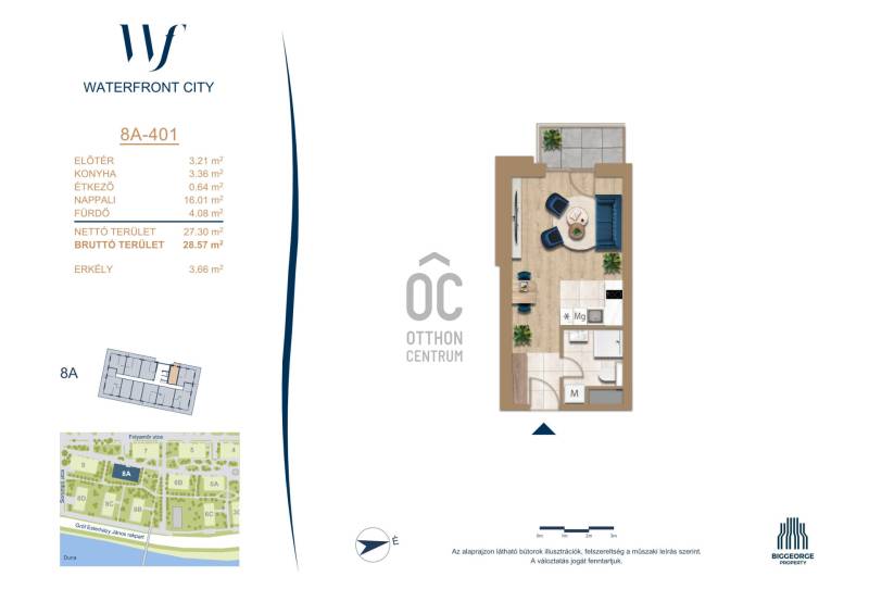 Projekt bemutatásaA projektrőlA Waterfront City egy új, modern városnegyed a 3. kerületben, ahol a természet közelsége és a városi kényelem tökéletes egyensúlyban van. A Duna-part közvetlen szomszédságában elhelyezkedő fejlesztés különleges atmoszférát kínál: a sétányt új épületek határolják, üzletekkel, kávézókkal és szolgáltatásokkal, amelyek élhető közösségi teret teremtenek.A 13 emeletes lakóépületből lenyűgöző örökpanoráma nyílik a budai hegyekre és a folyóra, a tágas teraszok pedig ideálisak a pihenéshez vagy a baráti összejövetelekhez. A zöldtetők, parkosított terek és fenntartható megoldások – mint az energiatakarékos rendszerek és okos otthon funkciók – mind hozzájárulnak a modern, környezettudatos életstílushoz.Látogass el értékesítési irodánkba, és tekintsd meg a városnegyed makettjét személyesen! Ismerd meg, milyen lesz az élet Budapest egyik legizgalmasabb új fejlesztésében!Óbuda szívébenKépzeld el, ahogy egy napsütéses délelőttön Óbuda szívében sétálsz, a Duna közelsége frissítően hat rád, miközben a Folyamőr utca, a Miklós tér és a Bogdáni út által határolt, öt hektáros területre érsz. A levegőben ott van a város történelme, mégis minden részletében a jövő hívogat.A 50 000 négyzetméteres területen egy hangulatos sétány vezet végig, amely egyenesen az óbudai Fő térre visz – mindössze 600 méterre. Ez a sétány nem csupán összeköt, hanem élményt nyújt: a Kolosy térről induló Óbudai Promenád részeként a város egyik legélhetőbb, legpezsgőbb szakaszán haladsz végig. És ha biciklivel érkeznél? A nemzetközi kerékpárút is itt halad el, Szentendre felé vezetve.Az 5. ütemben épülő 149 lakás mindegyike egyedi hangulatot kínál. Ahogy belépsz egy-egy otthonba, a hatalmas üvegfelületeken át beáradó fény és a tágas, szellős terek azonnal magukkal ragadnak. A kilátás? A Kaszap István park zöldje nyújt békét, míg a felsőbb emeletekről a Budai-hegység örökpanorámája tárul eléd – minden nap egy új festmény az ablakodban.A 6. ütemben 316 modern lakás épül, tágas teraszokkal és lenyűgöző kilátással a Dunára és a budai hegyekre. A lakók kényelmét őrszolgálat, kamerarendszer, mélygarázs, vendéglátóhelyek, belső park, játszótér és E-autó töltők szolgálják. Ez a projekt utolsó üteme, amely még közvetlen Duna-parti kapcsolattal rendelkezik.