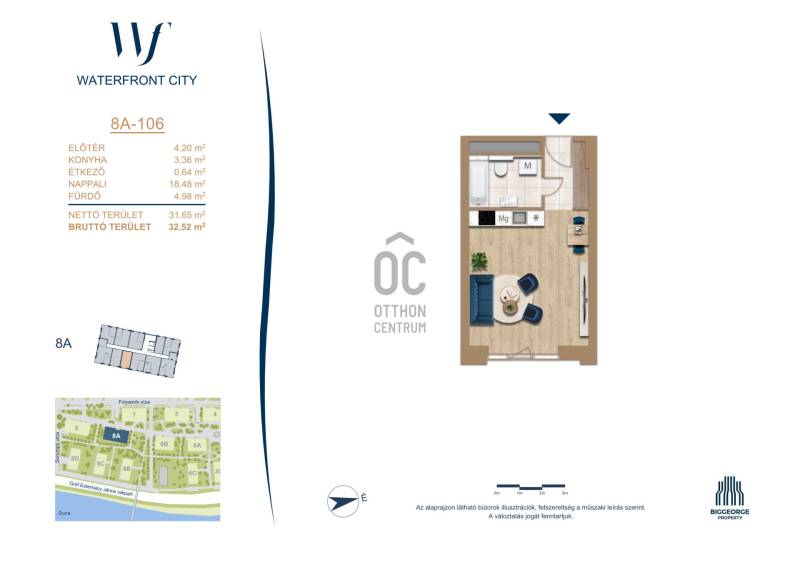 Projekt bemutatásaA projektrőlA Waterfront City egy új, modern városnegyed a 3. kerületben, ahol a természet közelsége és a városi kényelem tökéletes egyensúlyban van. A Duna-part közvetlen szomszédságában elhelyezkedő fejlesztés különleges atmoszférát kínál: a sétányt új épületek határolják, üzletekkel, kávézókkal és szolgáltatásokkal, amelyek élhető közösségi teret teremtenek.A 13 emeletes lakóépületből lenyűgöző örökpanoráma nyílik a budai hegyekre és a folyóra, a tágas teraszok pedig ideálisak a pihenéshez vagy a baráti összejövetelekhez. A zöldtetők, parkosított terek és fenntartható megoldások – mint az energiatakarékos rendszerek és okos otthon funkciók – mind hozzájárulnak a modern, környezettudatos életstílushoz.Látogass el értékesítési irodánkba, és tekintsd meg a városnegyed makettjét személyesen! Ismerd meg, milyen lesz az élet Budapest egyik legizgalmasabb új fejlesztésében!Óbuda szívébenKépzeld el, ahogy egy napsütéses délelőttön Óbuda szívében sétálsz, a Duna közelsége frissítően hat rád, miközben a Folyamőr utca, a Miklós tér és a Bogdáni út által határolt, öt hektáros területre érsz. A levegőben ott van a város történelme, mégis minden részletében a jövő hívogat.A 50 000 négyzetméteres területen egy hangulatos sétány vezet végig, amely egyenesen az óbudai Fő térre visz – mindössze 600 méterre. Ez a sétány nem csupán összeköt, hanem élményt nyújt: a Kolosy térről induló Óbudai Promenád részeként a város egyik legélhetőbb, legpezsgőbb szakaszán haladsz végig. És ha biciklivel érkeznél? A nemzetközi kerékpárút is itt halad el, Szentendre felé vezetve.Az 5. ütemben épülő 149 lakás mindegyike egyedi hangulatot kínál. Ahogy belépsz egy-egy otthonba, a hatalmas üvegfelületeken át beáradó fény és a tágas, szellős terek azonnal magukkal ragadnak. A kilátás? A Kaszap István park zöldje nyújt békét, míg a felsőbb emeletekről a Budai-hegység örökpanorámája tárul eléd – minden nap egy új festmény az ablakodban.A 6. ütemben 316 modern lakás épül, tágas teraszokkal és lenyűgöző kilátással a Dunára és a budai hegyekre. A lakók kényelmét őrszolgálat, kamerarendszer, mélygarázs, vendéglátóhelyek, belső park, játszótér és E-autó töltők szolgálják. Ez a projekt utolsó üteme, amely még közvetlen Duna-parti kapcsolattal rendelkezik.
