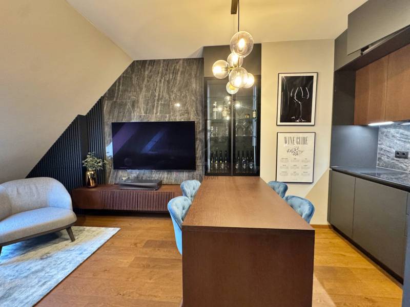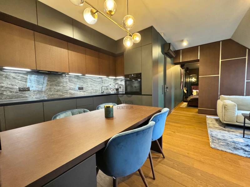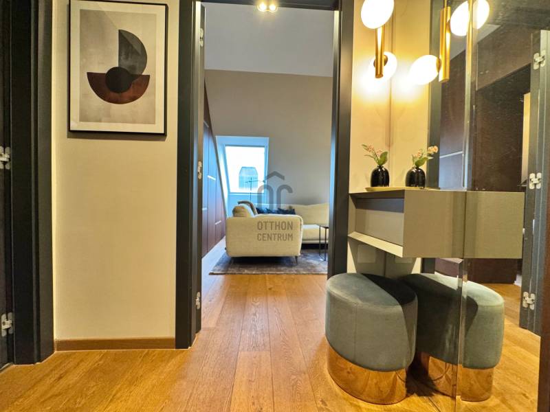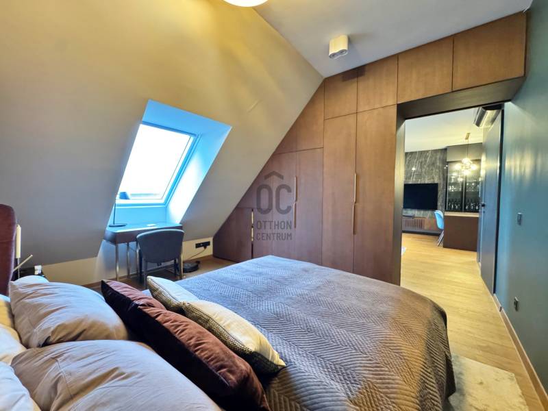 Eladó Budapest IX. kerületében, a Rehabilitációs területen, a Lenhossék utcában egy nettó 37 m²-es, tetőtéri, másfél szobás, teljes bútorzattal felszerelt lakás!A 2020-ban épült, modern társasház a régi épület felújított homlokzati elemeit megtartva készült, a Kerekerdő park közvetlen közelében.A lakás nettó 37 m² (összes alapterület 51 m²), kiváló elrendezéssel és világos terekkel. A tulajdonos magas minőségű burkolatokat, bútorokat és egyedi tervezésű dizájnelemeket építtetett be, így az ingatlan valóban prémium érzetet nyújt.A lakás teljes bútorzattal kerül átadásra, így azonnal költözhető, további beruházást nem igényel.Vásárolható a lakáshoz egy tároló 3,7 m2 ára: 3M.-Ft és egy gépkocsibeálló a mélygarázsban ára 9M.-Ft. Főbb jellemzők:Tetőtéri, másfél szobás kialakításTeljes bútorzattal eladóMagas minőségi burkolatok és bútorokIgényes, egyedi dizájn2020-ban épült társasházKlíma és egyedi mérésű házközponti fűtésKiváló állapot, azonnal költözhetőCsendes, biztonságos környékKiváló közlekedés: busz- és villamosmegállók néhány perc alatt elérhetőkÜzletek, éttermek, szolgáltatások a közelbenA környék folyamatos fejlődése miatt a lakás kiemelkedő befektetés, ugyanakkor első otthonnak is tökéletes választás.Amennyiben kérdése lenne, vagy szeretné megtekinteni személyesen is, kérem hívjon bizalommal, várom.Teljeskörű pénzügyi és jogi háttér-szolgáltatással várom kedves ügyfeleimet.