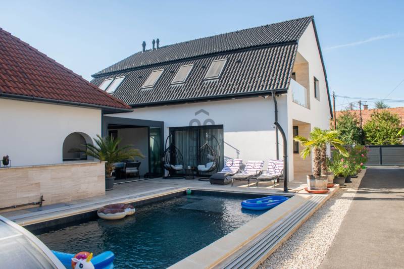 Letisztult formák, természetközeli életérzés, kompromisszumok nélküli OTTHON.Egy hely Szegeden, ahol a város ritmusa lelassul és a víz közelsége az egész napnak új jelentést ad.A Holt-Tisza partján található ez a 2020-ban teljesen újjáépített, prémium minőségű, összesen 361 m²-es modern ingatlan, amely a mai luxusotthonok minden ismérvével rendelkezik:tágas terek, természetes fény, időtálló anyagok, intelligens technológia, gondosan megkomponált részletek.RÖVID ÖSSZEFOGLALÓ:• 361 m² összterület • 1071 m² vízparti telek• 3 állásos garázs + SAJÁT MÓLÓ• Fűthető, fedett medence ellenáramoltatóval• 26 m² bioklimatikus pergolával fedett terasz• Loxone okosotthon rendszer, talajszondás hőszivattyú, mennyezethűtés• Teljes bútorzat és berendezés az árban• Rövid időn belül költözhető, magas minőségű családi házA LOKÁCIÓ – vízparti nyugalom, városi kényelemA saját móló és a víz közelsége olyan életmódot tesz lehetővé, amely más ingatlanoknál ritka: reggeli kávé a vízpparton, déluáni SUP-túra, esti sütögetés, horgászás vagy csak a természet csendes jelenléte.A FŐÉPÜLET – modern elegancia és időtálló funkcionalitásA 180 m²-es főépület központi tere a 76,8 m²-es amerikai konyhás nappali, amelyet körbeölel a fény és a kert látványa.A hatalmas üvegfelületek és a letisztult belsőépítészeti megoldások olyan egységet alkotnak, ahol a külső és belső tér kapcsolata szinte folyamatos.Tágas előszoba és közlekedő, 2 modern kialakítású fürdőszoba, 4 szoba (24,4 m2, 14 m2, 12,6 m2, 9m2 , melyből egy jelenleg gardróbként funkcionál), háztartási helyiség és gépészeti helyiség biztosítja a mindennapok kényelmét.A nappaliból közvetlen kapcsolat vezet a 26 m²-es, bioklimatikus pergolás teraszra, amely egész évben használható élettér – tökéletes helyszín étkezésekhez, pihenéshez vagy vendégfogadáshoz.A gondozott, átgondolt, harmonikus KERT és a fűthető, fedett, ellenáramoltatóval felszerelt MEDENCE garantálja a teljes kikapcsolódást a fárasztó hétköznapokat követően.A VENDÉGHÁZ – önálló lakótér, maximális kényelemmelAz 50 m²-es vendégház teljes értékű lakóegység amerikai konyhás nappalival,hálószobával, modern fürdőszobával, gardróbbal.Ideális többgenerációs használatra, felnőtt gyermek számára, nagyszülőknek vagy vendégeknek – külön, mégis kényelmesen közel a családhoz.MŰSZAKI FELSZERELTSÉG – a modern otthon láthatatlan kényelmeAz ingalan korszerű, energiahatékony és intelligens rendszerekkel működik:• Loxone Smart Home rendszer• talajszondás hőszivattyú• padlófűtés és mennyezethűtés• szellőztető rendszer• 3 rétegű üvegfelületek• elektromos redőnyök• központi porszívó• kamera rendszer + riasztó• automata öntözőrendszer + fúrt kút• vendégház: elektromos kazán + radiátoros fűtés• 3 állásos garázs (105 m²)• pince (25 m²) + tároló (15 m²)Ez a Holt-Tisza-parti családi ház egy olyan otthon, ahol minden tér a fényre, a nyugalomra és a kényelmes, modern életre van hangolva.A természet közelsége és a technológiai felszereltség együtt adja a prémium életminőség élményét.**Tekintse meg személyesen, hívjon bizalommal!