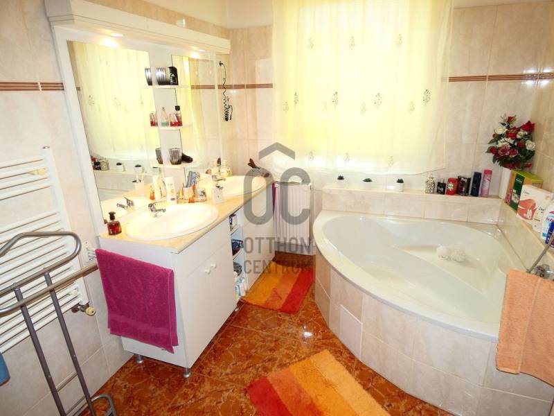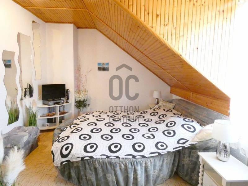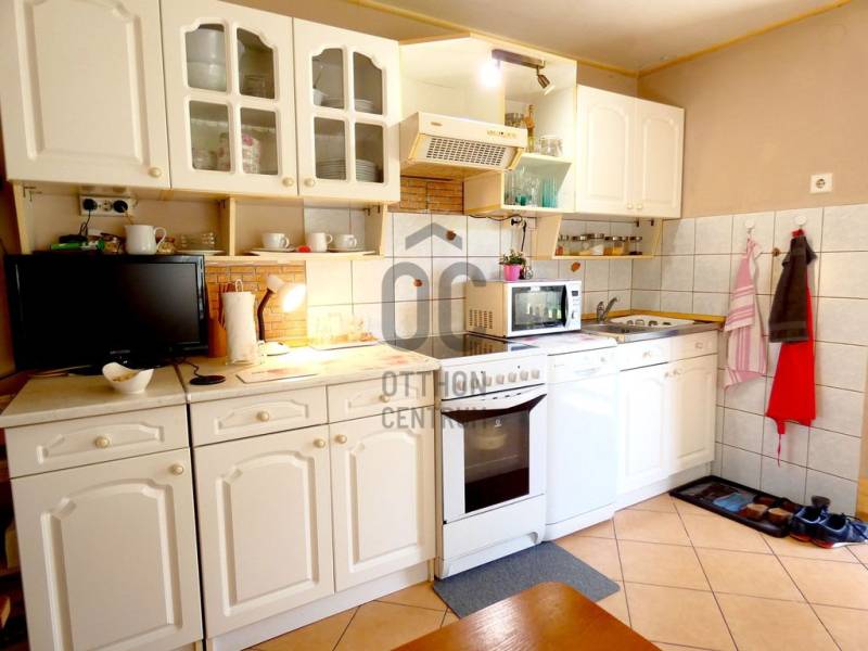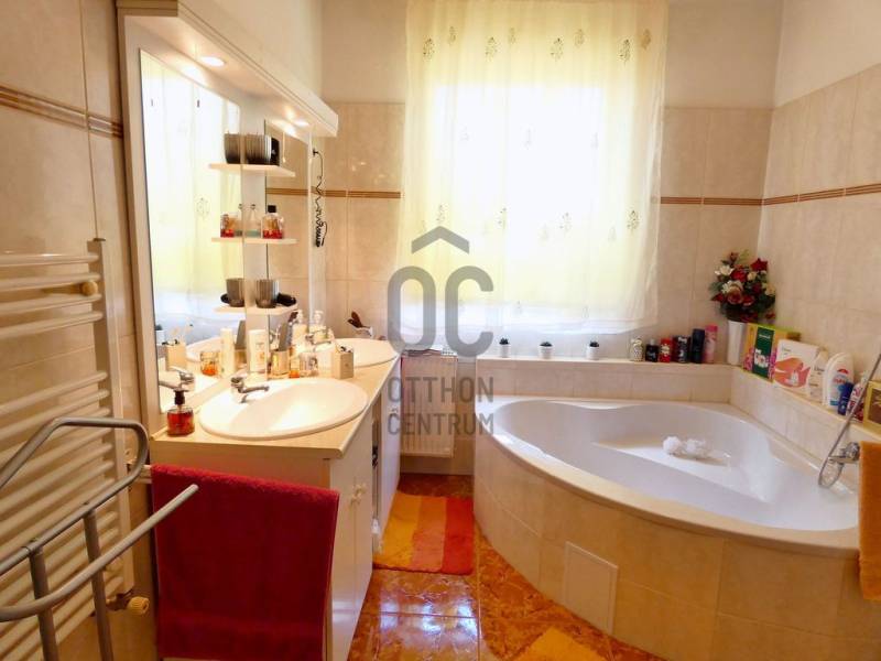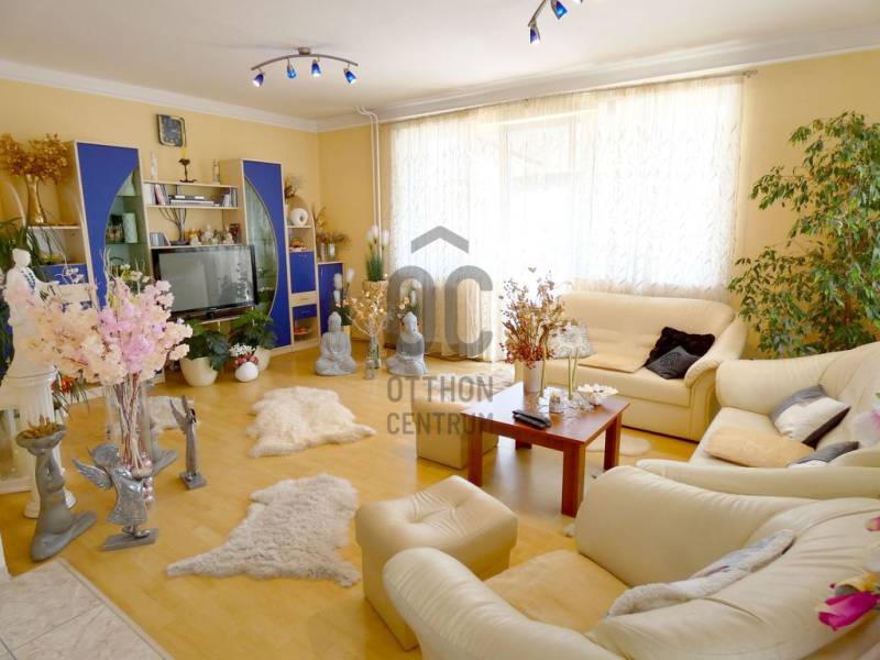 Tatán csendes utcában, szépen parkosított telken eladó 6 szobás családi ház.Az ingatlanban összesen 6 szoba, 3 fürdőszoba, 2 konyha és egy hatalmas étkező-nappali található. A méretéből adódik hogy akár két generációnak is alkalmas lehet, de ideális választás lehet pl. turisztikai befektetésre és kiadásra is.Tata nevezetessége a Kálvária domb kb. 500m-re, Tata történelmi városrésze a Kossuth térrel pedig 700m-re van csak a háztól.A ház csendes mellékutcában helyezkedik el, de megközelítése kitűnő, hiszen a Május 1 u. alig pár száz méterre, az M1 autópálya pedig 1,7Km-re, azaz autóval 1,5 percnyire található csak.Ebből adódóan ingázóknak is tökéletes lehet, hiszen az M1-en Győr, Komárom és Budapest is könnyen elérhető.A gépkocsik biztonságos parkoltatására egy utcafrontról nyíló garázs, valamint egy kapun belüli fedett beálló áll rendelkezésre.A ház nemcsak lakó, de kereskedelmi (pl. élelmiszer bolt), szolgáltató (pl. orvosi rendelő) vagy vendéglátó egységnek (pl. kávézó) is megfelelhet, akár csak ha az utcafrontról nyíló garázsra, és a mellette lévő helyiségekre gondolunk.A ház egy kellemes, jól kezelhető méretű telken fekszik.Az udvar belső része intim teret biztosíthat családi összejövetelekre, medence felállításra, vagy grillezésre.Az emeleti árnyékolóval fedett terasz erre a kellemes belső udvarra tekint le.Az ingatlan fűtése akár gázkazánnal, akár vegyes tüzelésű kazánról is megoldható. A beépített bútorok a vételár részét képezik, a többi bútor megállapodás tárgyát képezheti.Ha további kérdése van, szívesen tájékoztatom, de persze a legjobb,ha megnézzük személyesen. Ön mikor ér rá? Egyeztessünk!