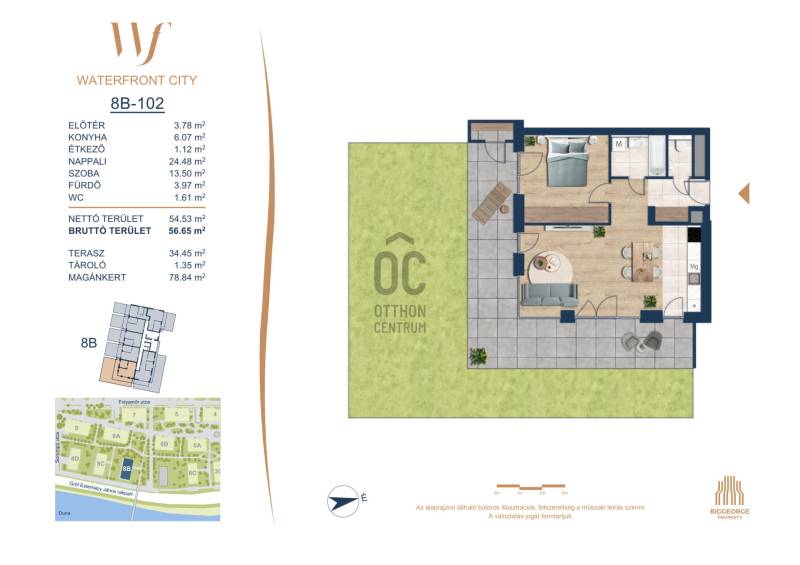 Projekt bemutatásaA projektrőlA Waterfront City egy új, modern városnegyed a 3. kerületben, ahol a természet közelsége és a városi kényelem tökéletes egyensúlyban van. A Duna-part közvetlen szomszédságában elhelyezkedő fejlesztés különleges atmoszférát kínál: a sétányt új épületek határolják, üzletekkel, kávézókkal és szolgáltatásokkal, amelyek élhető közösségi teret teremtenek.A 13 emeletes lakóépületből lenyűgöző örökpanoráma nyílik a budai hegyekre és a folyóra, a tágas teraszok pedig ideálisak a pihenéshez vagy a baráti összejövetelekhez. A zöldtetők, parkosított terek és fenntartható megoldások – mint az energiatakarékos rendszerek és okos otthon funkciók – mind hozzájárulnak a modern, környezettudatos életstílushoz.Látogass el értékesítési irodánkba, és tekintsd meg a városnegyed makettjét személyesen! Ismerd meg, milyen lesz az élet Budapest egyik legizgalmasabb új fejlesztésében!Óbuda szívébenKépzeld el, ahogy egy napsütéses délelőttön Óbuda szívében sétálsz, a Duna közelsége frissítően hat rád, miközben a Folyamőr utca, a Miklós tér és a Bogdáni út által határolt, öt hektáros területre érsz. A levegőben ott van a város történelme, mégis minden részletében a jövő hívogat.A 50 000 négyzetméteres területen egy hangulatos sétány vezet végig, amely egyenesen az óbudai Fő térre visz – mindössze 600 méterre. Ez a sétány nem csupán összeköt, hanem élményt nyújt: a Kolosy térről induló Óbudai Promenád részeként a város egyik legélhetőbb, legpezsgőbb szakaszán haladsz végig. És ha biciklivel érkeznél? A nemzetközi kerékpárút is itt halad el, Szentendre felé vezetve.Az 5. ütemben épülő 149 lakás mindegyike egyedi hangulatot kínál. Ahogy belépsz egy-egy otthonba, a hatalmas üvegfelületeken át beáradó fény és a tágas, szellős terek azonnal magukkal ragadnak. A kilátás? A Kaszap István park zöldje nyújt békét, míg a felsőbb emeletekről a Budai-hegység örökpanorámája tárul eléd – minden nap egy új festmény az ablakodban.A 6. ütemben 316 modern lakás épül, tágas teraszokkal és lenyűgöző kilátással a Dunára és a budai hegyekre. A lakók kényelmét őrszolgálat, kamerarendszer, mélygarázs, vendéglátóhelyek, belső park, játszótér és E-autó töltők szolgálják. Ez a projekt utolsó üteme, amely még közvetlen Duna-parti kapcsolattal rendelkezik.