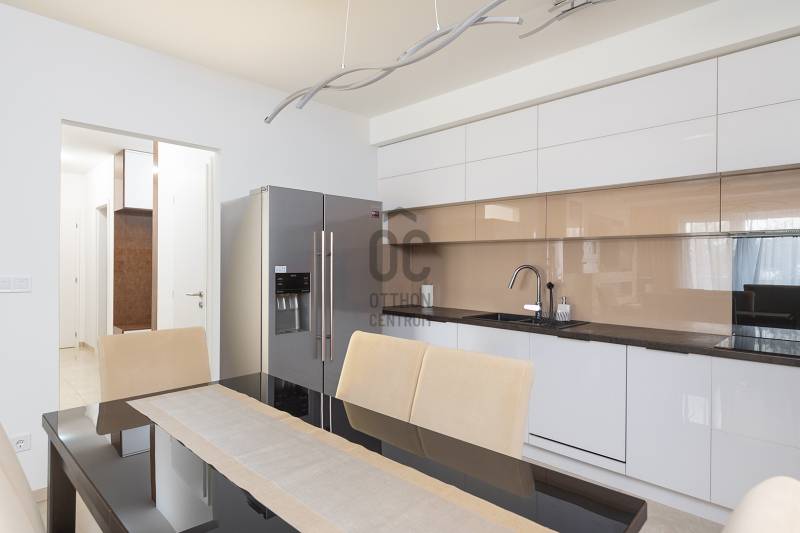 Modern életstílus, kertvárosi környezetben. Ez a lakás tökéletes választás, ha egy olyan otthont keresel, ahol a család minden tagja megtalálja a helyét.OKOS MEGOLDÁSOK - MOTOROS REDŐNYÖK - FULL KLIMATIZÁLT - DUPLA FÜRDŐSZOBA - DUPLA KOMFORT - ERKÉLYEXTRÁK: DUPLA NAGYMÉRETŰ GARÁZS + DUPLA TÁROLÓFőbb jellemzők:- 2022-ben épült, 3 szoba + nappalis – prémium lakás Zugló kertvárosában,- 93 m² lakóterület + 18 m² terasz,- 2 fürdőszoba + külön WC,- háromrétegű hő- és hang szigetelő nyílászárók,- elektromos redőnyök, szúnyoghálóval,- házközponti fűtés + elektromos padlófűtés,- iverteres hűtő - fűtő klíma minden szobában,- okosvezérlés (fűtés, hűtés, árnyékolás, applikációról)Egyéb jellemzők:- az egyedi tervezésű, méretre készített gépesített konyha a vételár része,- szinte az összes bútor egyedi méretre készült, így a lakásban maradnak, a vételár részei,Extrák:- egy garázs és egy tároló kötelezően megvásárolandó, a nagyméretű garázs közvetlenül a lift mellett található (ára: 9,5 M Ft), a tároló 3 m² (ára: 2,7 M Ft) közvetlenl a garázs mellett,- a második garázs és tároló opcionálisan megvásárolható, a szintén nagyméretű garázs is közvetlenül a lift mellett található (ára: 9,5 M Ft), a tároló az átlagostól nagyobb, 5 m² (ára 4,5 M Ft)Az ingatlan per-, teher- és igénymentes, 60 napon belül birtokba vehető.Infrastruktúra:- csendes, biztonságos kertvárosi környezet, - Rákos-patak sétány 100 m-re, - bevásárlás, éttermek, kávézók a közelben, - kiváló közlekedés: 77-es, 82-es troli és több busz/villamos, autóval belváros gyorsan elérhető,- több bölcsőde, óvoda és iskola a közelben, illetve egészségügyi intézményekCSOK, hitel felvehető. Igény esetén bankfüggetlen és DÍJMENTES hiteltanácsadó közreműködését biztosítjuk, aki a teljes folyamaton végigkíséri Önt.Az adásvétel biztonságos és gördülékeny bonyolítása érdekében tapasztalt ingatlan szakjogászaink szolgáltatását is ajánljuk.Kérdés esetén, vagy amennyiben meg szeretné tekinteni, kérem keressen az elérhetőségeimen.A hét minden napján elérhető vagyok 8:00-19:00 között, elfoglaltság esetén visszahívom.Amennyiben még ingatlanát el kell adnia, azügyben is állok rendelkezésére.Referencia szám: H509925