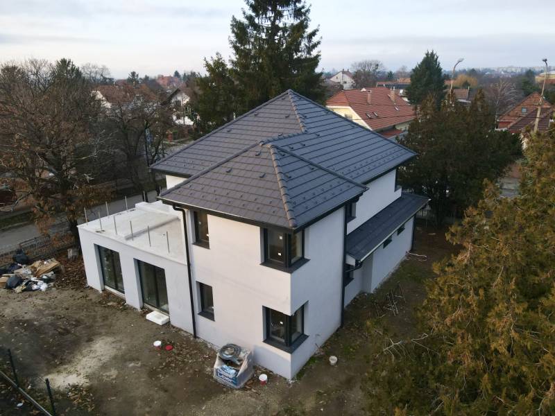 Budapest XVI. kerületében, Sashalom közkedvelt részén, az Újszász utca 35. szám alatt, 578 m²-es telken megépült, önálló, új építésű családi ház eladó megbízható, számos referenciával rendelkező kivitelezőtől.Az ingatlan elkészült, a teljes szerkezet, gépészet és külső környezet kialakítása megtörtént, már csak a burkolatok, szaniterek és beltéri ajtók kiválasztása és beépítése hiányzik, így az új tulajdonos saját ízlésére szabhatja a belső tereket.A ház nettó 166,21 m² lakótérrel és 21,59 m²-es garázzsal rendelkezik, kétszintes kialakítású, modern megjelenésű és átgondolt alaprajzú.Az épület Porotherm 30-as téglából készült, 15 cm EPS homlokzati hőszigeteléssel. A padlószerkezetbe 10 cm lépésálló hőszigetelés, a födémbe 30 cm ásványgyapot került beépítésre. A ház monolit vasbeton födémmel épült, amely kiemelkedő statikai és akusztikai tulajdonságokat biztosít. A nyílászárók 6 légkamrás, háromrétegű üvegezésűek, alumínium, elektromos redőnyökkel szerelve.A fűtést és a használati melegvíz-ellátást split rendszerű hőszivattyú biztosítja padlófűtéssel, a hűtést fan-coil rendszer szolgálja minden helyiségben. Az ingatlan H tarifás villanyórával, valamint napelem előkészítéssel került kialakításra.A földszinten egy közel 59 m²-es amerikai konyhás nappali található, közvetlen 21,83 m²-es teraszkapcsolattal. Ezen a szinten helyet kapott egy hálószoba saját fürdőszobával, egy külön fürdő az előtérből nyílóan, valamint a garázs. Az emeleten három hálószoba, egy fürdőszoba, gépészeti helyiség és egy 12,52 m²-es terasz került kialakításra üveg korláttal.Az ingatlanhoz térkövezett gépkocsi-beálló és járdák, elektromos kapu, valamint riasztó- és kamerarendszer előkészítés tartozik.A még választható belső elemek az alábbi árkategóriákig kerülhetnek beépítésre:-hidegburkolat: 10 000 Ft/m²-melegburkolat: 6 000 Ft/m²-beltéri ajtók: 80 000 Ft/db-fürdőkád: 70 000 Ft-csaptelepek: 25 000 Ft/db-épített zuhany-Legrand elektromos szerelvényekAz ingatlan ideális választás azok számára, akik már elkészült, azonnal továbbfinomítható, modern és energiatakarékos otthont keresnek Budapest XVI. kerületének egyik legkedveltebb részén.INGYENES hitel tanácsadás, CSOK Plusz - Otthon Start ügyintézés!BANKFÜGGETLEN hitelcentrumunk az összes elérhető bank és hitelintézet ajánlatát versenyezteti az Ön kedvéért, ráadásul DÍJMENTESEN.- Egyedi, bankfiókban nem elérhető kamat- és díjkedvezmények- Hitelképesség vizsgálat- Idő, energia és pénz megtakarítás- Teljes hivatali ügyintézésAmennyiben hirdetésem felkeltette az érdeklődését vagy egyéb információra van szüksége hívjon bizalommal!