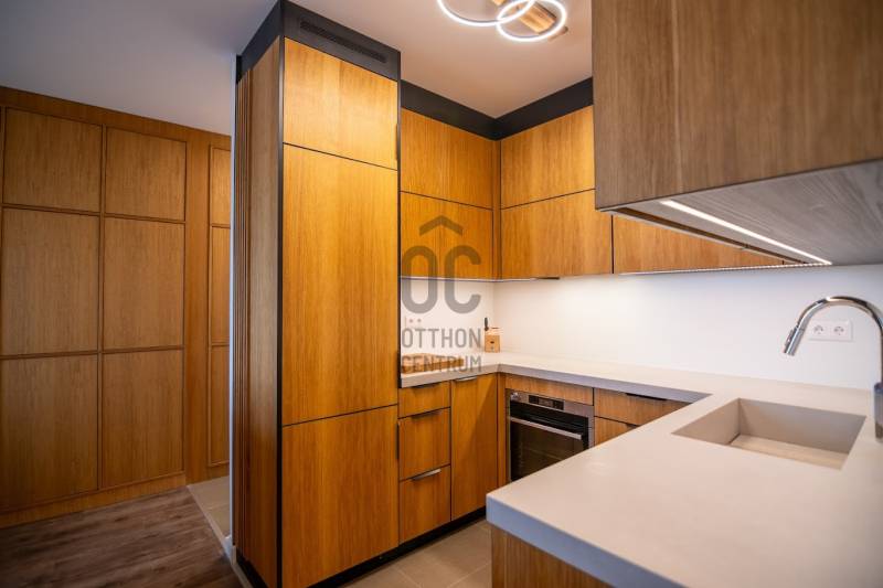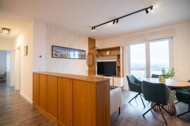 Képzelje el, ahogy minden reggelét napfénnyel és panorámával indítja, egy olyan otthonban, ahol a modern kor minden kényelme és az időtlen elegancia kéz a kézben jár. Ez nem csupán egy lakás, hanem egy életstílus ígérete, egy otthon, amely készen áll az Ön és családja befogadására.Eladó egy újszerű, 2023-ban átadott, prémium minőségű ingatlan Budapest egyik legdinamikusabban fejlődő részén, a 11. kerületben, Kelenföld szívében.Főbb jellemzői: teljesen berendezve, elegancia, kényelem, panoráma, 2 db teremgarázs beálló.Miért ez az otthon a tökéletes választás?•Ahol a fény otthonra talál: A kitűnő délnyugati tájolásnak köszönhetően a lakás rendkívül világos. A napfény körbejárja a tereket, a két nagyméretű (8 és 7 nm-es) teraszról pedig zavartalan panorámában gyönyörködhet, kortyolgatva a reggeli kávéját.•A beköltözés élménye: Felejtse el a költözéssel és bútorozással járó stresszt! Az ingatlan teljes berendezéssel – a legapróbb kiegészítőktől a gépesítésig – eladó. Csak a bőröndjét kell hoznia, és máris kezdődhet az új élet 2026. január 1-től.•Prémium minőség minden részletben: Az igényesség nem ismer kompromisszumot. A konyhában egyedileg legyártott, tölgyfa furnér konyhabútor és elegáns kerámia pult várja a kulináris élményeket.•Terek az egész családnak: A kiváló beosztású, nappali + 3 hálószobás elrendezés ideális életteret biztosít akár egy 4 tagú család számára is, ahol mindenkinek megvan a saját privát szférája. Duplakomfort, WC a fürdőszobában és külön helyIségben is.•Lokáció, ami összeköt: Kelenföld legjobb közlekedési adottságai vannak. Néhány perces sétára található a Bikás parki metróállomás (M4), a Kelenföld Vasútállomás, Autóbusz-állomás, és számos villamosjárat (1, 47, 49). Innen a város bármely pontja pillanatok alatt elérhető.Praktikus információk:*A 7. emeleti, akadálymentesen megközelíthető lakás egy rendezett, liftes társasházban található. *Helyiségenként külön szabályozható a hőmérséklet, mennyezeti fűtés/hűtés működik a ház hőszivattyú rendszeréről.*Távirányítóval vezérelhető elektromos redőnyök vannak minden külső nyílászárón.*A közös költség mindössze 30.000,- Ft/hó, amely tartalmazza a felújítási alapot, szemétszállítást, takarítást és a lift karbantartását. Minden közmű egyedi mérésű, a fogyasztás alapján fizetendő.*A ház teremgarázsában lehetőség van 2 db autóbeálló megvásárlására is, egyenként 11 M Ft áron, ahonnan lifttel közvetlenül a lakás szintjére érkezhet.Ne maradjon le erről a kivételes lehetőségről!Keressen minket bizalommal a megadott telefonszámon időpont-egyeztetés céljából, és tekintse meg személyesen leendő otthonát! Bankfüggetlen hiteltanácsadóink készséggel állnak rendelkezésére a legkedvezőbb finanszírozási lehetőségekkel kapcsolatban.