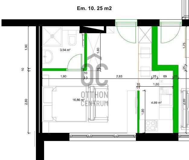 Tisztelt Érdeklődő!Makón, a Liget Lakóparkban jelenleg is zajlanak azok az átalakítási és felújítási munkálatok, amelyek egy teljesen megújult, modern emeleti lakást fognak eredményezni! Ez azt jelenti, hogy Ön lesz az elsők között, aki birtokba veheti ezt a világos, jól kialakított elrendezésű otthont – vadonatúj állapotban.Az ingatlan a Liget utcában, egy zárt lépcsőházas, 16 lakásos társasházban található. A belváros autóval mindössze 3 perc, kerékpárral 5 perc, gyalog körülbelül 17 perc alatt érhető el, így minden fontos intézmény és szolgáltatás gyorsan megközelíthető. Bevásárlási lehetőségek, óvoda, iskola és buszmegálló néhány száz méterre található, ami a mindennapokat igazán kényelmessé teszi.A társasház emeletén eladó egy 25 m²-es, téglaépítésű lakás, amely teljeskörű felújításon megy keresztül. Az ingatlanban a teljes áram-, víz- és csatornahálózat új, a gáz a lakásba nincs bekötve. A fűtés házközponti, hőfokszabályzós radiátorokkal, egyedi fogyasztásméréssel működik, így minden lakó csak a saját fogyasztása után fizet. A melegvíz-ellátást korszerű okosbojler biztosítja, a lakásban 1 db klíma került kiépítésre.A lakás bútorozatlan, beépített gépek nélkül kerül átadásra, azonban a szükséges csatlakozások és kiállások már kiépítésre kerültek, így az új tulajdonos saját ízlése szerint alakíthatja ki otthonát. A lakótér szoba-nappali-konyha-étkező formájában egybenyitott, így a kompakt alapterület ellenére tágas és levegős érzést nyújt. A fürdőszoba mosdóval, WC-vel és zuhanyzóval felszerelt, minden praktikus igényt kielégít. A burkolatok mintái megtekinthetők az irodában.A parkolás az utcán díjmentesen megoldható, de a lakáshoz a telekhatáron belül saját parkoló is vásárolható 1 millió forintért. Közös tároló nincs, de az udvarban kerékpártároló biztosított.A lakópark legkésőbb 2026.05.31-én kerül átadásra, utána a lakás akár azonnal költözhető. A részletes műszaki paraméterekről és a fizetési ütemezésről érdeklődjön személyesen az irodánkban.Kíváncsi? Jöjjön el irodánkba, és tegyük kézzelfoghatóvá a terveit!