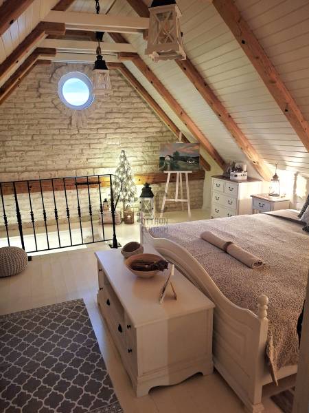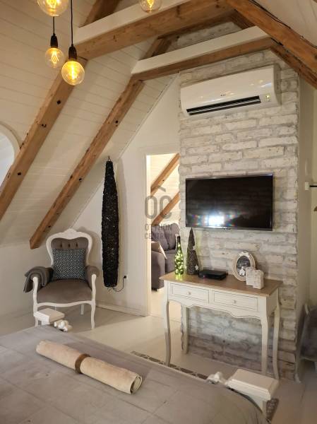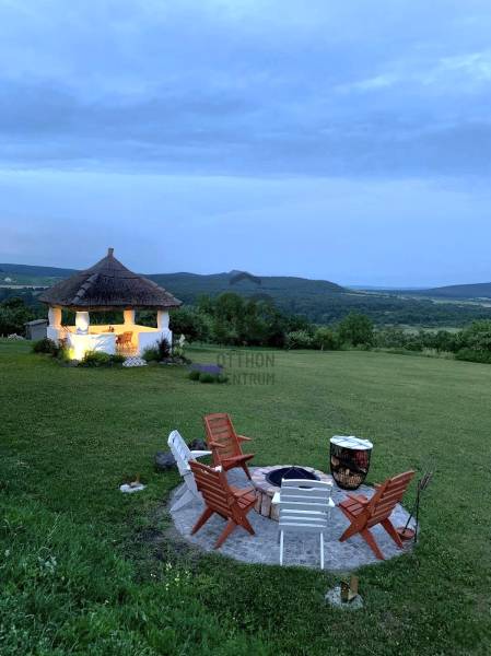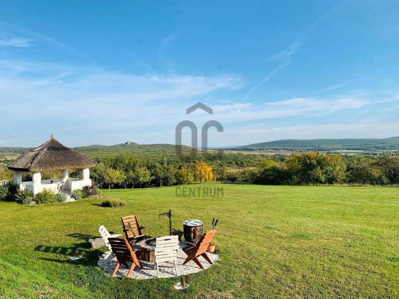 A Káli- medence közepén elhelyezkedő, az elmúlt években gasztronómiájáról ismertté vált Köveskál külterületén található \"beleszeretős\" vendégházat ajánlunk figyelmébe!Zavartalan pihenést biztosító környezetben, lenyűgöző panorámával a környező hegyekre, szőlődűlőkre, a Hegyestűre és Köveskálra.KIEMELT MEGBÍZÁS AZ OTTHON CENTRUM KÍNÁLATÁBAN!A régi PRÉSHÁZ 2016- ban teljes felújításon esett át! - a Balaton- felvidék építészeti jegyeinek megőrzésével épült újra (vakolatdíszek, kovácsoltvas spaletták, nád héjazat...) - az egyedileg készített bútorok és prémium mínőségű burkolatok eredménye egy otthonos, varázslatos belső tér - alapterületét tekintve a lakótér két szinten 90 m2 + 80 m2 pince - az alsó szinten a konyha - étkező mellett a fürdőszobát és a pincét találjuk, a tetőtérben kettő egymásból nyíló hálószoba került kialakításra - a fűtést lent Nobo panelek ( Wi- fi támogatással ), fent hűtő- fűtő klíma biztosítja - villany bevezetve, a vízellátást a pincében elhelyezett 6000 l-es hidroforos vízrendszer ( kamerával ) biztosítja - a 3 m belmagasságú pince további bővítési lehetőséget nyújt, akár egy külön apartman vagy wellnes részleg megvalósításáraA 3508 m2-es panorámás telek nagyrészt füvesített, az út melletti telekhatárt levendulák és mandulafák szegélyezik.Egy nádtetős szaletli és egy sütögető biztosítja a kinti pihenést, családi és baráti összejövetelek helyszíne lehet.Nyaralónak és vendégháznak ( 7 éve működik, bejáratott vendégkör) is tökéletes választás lehet.Besorolása művelés alól kivett zártkert, azonnal birtokba vehető, nem kell kifüggeszteni.A vételár tartalmazza a teljes bútorzatot és berendezést!KÁLI- MEDENCE A Balaton- felvidék lenyűgöző természeti- tájképi világának egyik koronaékszere ez a romantikus, békés, idilli táj.Egyedülálló tájképi értékei mellett kőzettani, növény- és állattani kincsei is kimagaslók .Számos túraútvonala mellett a Balaton közelsége is fontos szerepet játszik.Ha felkeltettem érdeklődését, kérdése merült fel vagy szeretne időpontot egyeztetni, várom megtisztelő hívását a megadott elérhetőségeken!