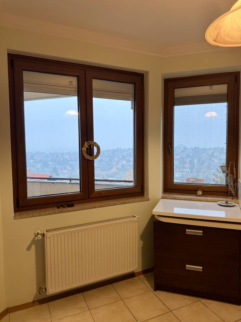 Csak a mi irodánk kínálatában elérhető ingatlan!Örökpanorámás társasházi lakás, garázzsal, autóbeállóval, tárolóval együtt egy 6 lakásos társasházban, Rózsavölgy egyik legkedveltebb zöldövezeti részén eladó!XI. és XXII. kerület határán, Rózsavölgy hegyoldali, csendes, panorámás utcájában kínálunk megvételre egy felújított állapotú, 98 m²-es örökpanorámás, egyszintes, 3 szobás, teraszos téglaépítésű lakást, amely tökéletes választás lehet azoknak, akik a természet közelségét és a városi infrastruktúrát egyszerre szeretnék élvezni.A lakás kertvárosias környezetben helyezkedik el, így a felhőtlen nyugalom garantált.A lakásból gyönyörű elvehetetlen panorámás kilátás nyílik a városra.A fűtésről gáz cirkó kondenzációs kazán gondoskodik, amely gazdaságos és hatékony megoldás.A lakás egy szintes, két hálószobás, két fürdőszobás, ideális választás lehet mindazok számára, akik egy felújított, örökpanorámás, tágas, panorámás ingatlant keresnek Budapest szívében, akik nyugalomra és csendre vágynak, de fontos számukra a gyors belvárosi elérhetőség is.Főbb jellemzők:-98 m² lakótér, világos és modern belső terek-nappali + 2 hálószoba (igény szerint 3 hálószobává átalakítható)-két fürdőszoba-két panorámás terasz (nappaliból és az egyik hálószobából)-rengeteg tárolóterület a lakásban és a garázsszinten is-teljesen gépesített, modern és tágas konyha -saját 13 m2-es teremgarázs hely, vízkiállással és elektromos kiállással + 13 m2-es -udvari beálló, saját 7 m2-es tároló és közös tárlóhelyiségek a garázsszinten-nappaliban klíma-beépített, gépesített konyhabútor-beépített, tükrös gardrób szekrények-kondenzációs kombi kazán-nappaliban alternatív fűtésként plusz elektromos padlófűtés-műanyag-aluminium ablakok-elektromos redőnyök minden nyílászárón és szúnyogháló minden helyiségben legalább egy nyílászárón -riasztóKörnyék:Csendes, zöldövezeti elhelyezkedés, panorámás utcaJátszóterek, óvoda pár perc sétára, Savoya Park bevásárlóközpont a közelben A környéken található sportpályák, játszóterek és kirándulóhelyek ideálisak családosok számáraKiváló közlekedés: belváros 15–20 perc alatt elérhetőKépzeld el, hogy egy olyan otthonra bukkansz, ahol a madárcsicsergés az ébresztő és a napfelkeltét csodálva kávézgatsz reggelente és a csend és béke szigetén alszol el esténként. Az utca átmenő forgalomtól mentes, rendkívül csendes.Ez az ingatlan ritka lehetőség Rózsavölgyben, ne maradjon le róla!A környék infrastruktúrája kiváló (41-es villamos 5 perc alatt elérhető, 150, 150B, 250, 250B buszmegálló 10 perc gyalogos távolságban elérhető).Az ingatlan megtekintése előre egyeztetett időpontban lehetséges, akár hétvégén is.Amennyiben felkeltette az érdeklődését, további kérdéseivel kapcsolatban várom jelentkezését!