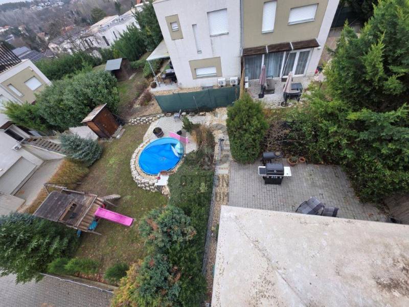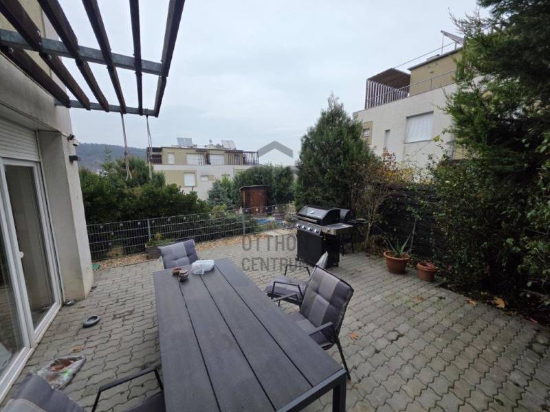 KIADÓ lakásIngatlan alapterülete: 95 m2- alsó szint: nappali-étkező-konyha(32 m2), wc, terasz , kert(medence, kerti tároló, (játszóvár))- felső szint: 2 db szoba(13+13m2), fürdőszoba(zuhany, wc, mosdó)- tető szint: 1 db szoba (13 m2) tetőterasszalIngatlanhoz tartozó egyéb kizárólagos használatú területek:- kb. 20 m2 burkolt terasz,- növényekkel beültetett kert + automata locsolóhálózat (250-300m2) + kerti tárló faház + medence(fenntartása bérlő költsége)- 1 db pincei mosókonyha (mosdó és mosógép csatlakozó)-tároló (12m2)- 1 db pincei gépkocsi tároló (egymás mögé 2 db kocsi is befér)- 1 db utcaszinti kapuval elzárt gépkocsi parkolóAz ingatlant bútorozatlanul (kivéve: konyhabútor + beépített konyhagépek, mosdópultok, klímák, lámpák stb.) bérbeadó.Fűtés: Pincében lakástól függetlenül elhelyezett kondenzációs gázkazán és használati meleg víz tároló. Hőleadó: mennyezet és padlófűtésHűtés: minden lakószobában (nappali, hálók) 1 db split klíma berendezésÁrnyékolás: lakószobák mindegyike redőnyös árnyékolással rendelkezik.Az épület hőszigetelése: protherm vázkerámia + 15 cm EPS dryvit hőszigetelés , a tetőszigetelése 25 cm EPSNyílászárók: Ablakok-erkély ajtók: Rehau hőszigetelő üvegezésselBejárati ajtó: Több ponton záródó biztonsági ajtóAz ingatlan teljesen felújítva és kifestve (fehér) kerül átadásra az új bérlő részére.Közösköltség:Vízátalány (víz, locsolóvíz mérőórával): 5 000 ft/hó (3-4 havonta fogyasztás/óra alapján elszámolva),Közösköltség: 22 000 ft/hó (Társasházi Közös területeken: kuka, takarítás, só, takarítószerek, térköves felületek karbantartása közösképviselet, javítási munkák, közös területek kertészeti munkák, kopó-fogyó elemek cseréje, kapukarbantartás stb.)Felújítási alap: 3 000 ft/hóGáz- és áramfogyasztás elszámolása a lakás saját órája alapján.Minden fogyasztást (kivéve víz, lásd fent) Bérbeadó havonta olvassa és számlázza (nettó+áfa bontásban).Fűtési és melegvízkészítési rendszer:Kondenzációs gázkazán gazdaságos felületfűtéssel (padló, fal, mennyezet kombinálva) + a gazdaságos működtetés érdekében tetőre épített napkollektor rendszer is működik.Bérleti díj: Bruttó 622.300 FtKaució: 3 havi (kisállat és külföldi személy esetén +1 havi)Közjegyzői díj: a bérlő költségeAmennyiben felkeltette az érdeklődését az ingatlan, kérem hívjon telefonon.