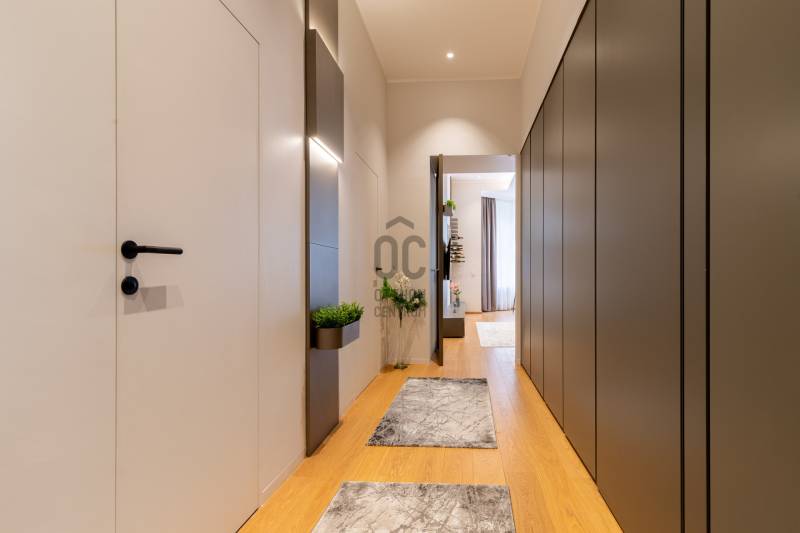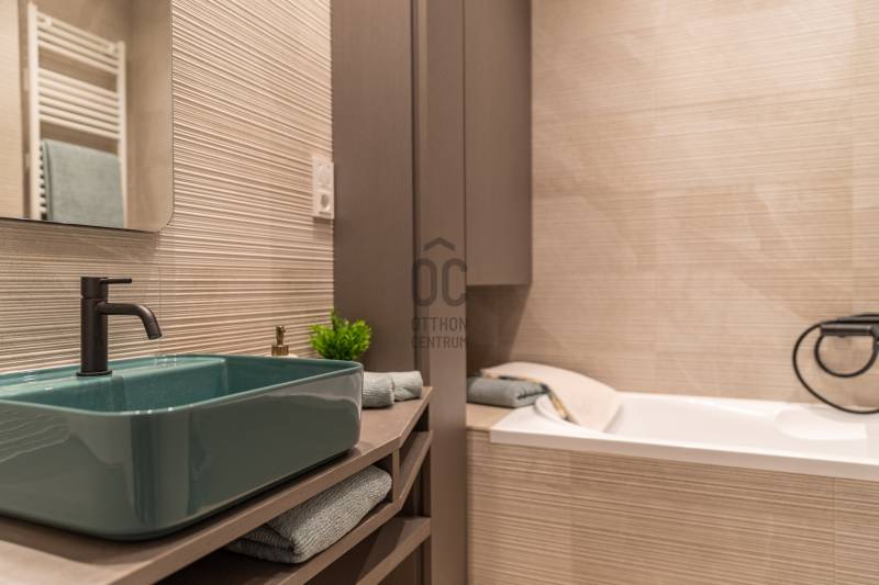 A 96 m²-es, tökéletes arányú, magas minőségben kivitelezett luxuslakásban három elegáns hálószoba, három fürdőszoba, valamint egy külön vendégmosdó kínálja a kényelmet.Minden részletében érződik az időtálló anyagok ereje, és az a harmónia, amelyet csak igazán átgondolt terek tudnak megteremteni.A bejárat előtt egy privát, zárható rész fogadja az érkezőt – egy intim kültéri tér, amely teraszként funkcionál, és már az ajtó előtt megadja a lakás exkluzív, külön világát.Belépni ide olyan érzés, mintha egy modern műalkotásba lépnénk:a fény, a formák, a textúrák és a légies elegancia egyszerre teremtik meg azt a különleges atmoszférát, amelyet nem lehet mással összetéveszteni. - Üdv itthon!MŰALKOTÁS A TÉR FELETT – MODERN KÉNYELEM ÉS FINOM ELEGANCIAEz a lakás nem egyszerű felújítást kapott – teljes átalakuláson ment keresztül, amely során minden centimétert újragondoltak.A modern technológia, a minőségi anyaghasználat és az időtálló elegancia találkozása olyan harmonikus egységet hozott létre, amely tiszteletben tartja a klasszikus épület karakterét, mégis egy letisztult, kortárs otthont eredményez.A 32 m²-es amerikai konyhás nappali a lakás központi tere, ahonnan az étkező íves ablakai gyönyörű fényívet hoznak létre.Nappal természetes fényben fürdik a helyiség, este pedig meghitt hangulatot kölcsönöz – egy olyan tér, amely minden élethelyzethez alkalmazkodni tud.HÁLÓSZUITEK – FUNKCIONÁLISAN ÁTGONDOLT, PRIVÁT TEREK• Szülői lakosztály Tágas, különálló élettér saját fürdőszobával és gardróbbal, amely teljes nyugalmat és intimitást biztosít a mindennapokhoz.• Gyermeklakosztályok A lakás két gyerekszobával rendelkezik, mindegyik saját funkcionális háttérrel: az egyik gyerekszoba önálló lakrész, zuhanyzós fürdővel és gardróbbal, a másik gyerekszoba egy külön, kádas fürdőszobához kapcsolódik.EGYEDI TERVEZÉS ÉS PRÉMIUM ANYAGOKA lakás minden helyiségében egyedileg gyártott beépített bútorok találhatók, a belsőépítész tervei alapján kialakítva.A részletekben rejlő harmónia – textúrák, formák, világítások – egy modern, mégis lélekkel teli otthont hoz létre.Konyha – funkció és design találkozásaA konyha prémium minőségű beépített gépekkel felszerelt - Bosch készülékekkel, és végig a belsőépítész által megtervezett, egyedi konyhabútorral.Olasz nosztalgia radiátorok - Különleges esztétikai elemként, mégis praktikus funkcióval, a tér elegáns karakterét erősítik.OKOS OTTHON – KÉNYELEM A MINDENNAPOKBANA lakás modern technológiai rendszereinek köszönhetően teljeskörűen okosotthonként működik:- távolról vezérelhető fűtés,- telefonról irányítható világítás,- integrált okosotthon-vezérlés,- hangtechnika minden szobában,- modern riasztórendszer a maximális biztonságért.A technológia diszkréten simul bele a terekbe, miközben a kényelmet és az élményt napról napra fokozza.ÉPÜLETA lakás egy 1900 körül épült, történelmi hangulatú, szépen megőrzött polgári ház első emeletén található.Az épület rendezett, lifttel felszerelt, tiszta, pénzügyileg stabil, és a meglévő megtakarításoknak köszönhetően folyamatosan karbantartott.A közös költség 24.000 Ft/hó, amely a szokásos üzemeltetési díjakat tartalmazza.Minden közmű (víz, villany, gáz) egyedi mérőórák alapján fizetendő.Parkolás a környéken közterületen lehetséges, bejelentett lakosok számára kedvezményes parkolási engedéllyel.A közelben több helyen is van garázsbérlési lehetőség, ami tovább növeli a mindennapi kényelmet.LOKÁCIÓMiért érdemes ide költöznöd vagy itt befektetned?- Budapest egyik legkarakteresebb városrésze – Belső-Ferencváros a maga történelmi utcavonalaival, felújított házaival és modern városi hangulatával különleges elegyet alkot.- A környezet egyszerre életteli és megnyugtató: hangulatos kávézók, díjnyertes éttermek, galériák és kreatív terek szegélyezik a környéket.- Pár perc séta a Ráday utca, amely ma Budapest egyik legnépszerűbb gasztrokultúrája – teraszos éttermek, kávézók, borbárok sorakoznak egymás mellett.- A Kálvin tér és a környező egyetemek közelsége (ELTE, BME, Károli) pezsgő, mégis kulturált városi életet biztosít.- Mindössze néhány percre található a Fővám tér, a Duna-part és a Vásárcsarnok – ahol friss alapanyagok, különleges piac hangulat és valódi városi energia vár.- A közlekedés elsőrangú: M3 és M4 metró, számos buszjárat, villamosvonal és a belváros minden pontja könnyen elérhető.- A környék teljes infrastruktúrával rendelkezik: üzletek, gyógyszertár, bankok, fitnesztermek, szolgáltatások karnyújtásnyira.- Kulturális értékben rendkívül gazdag térség – könyvtárak, egyetemek, színházak, galériák, koncerthelyszínek mind a közelben.- Kikapcsolódási lehetőségek egész sora: esti Duna-parti séta, brunch a környék újhullámos kávézóiban, vagy vacsora Budapest egyik kedvenc gourmet negyedében.- A legközelebbi bevásárlóközpontok, mint a Corvin Plaza vagy a Westend, néhány megállóra elérhetők.A környék összességében biztonságos, modern és barátságos – olyan élettér, ahol a mindennapok minősége új szintre emelkedik, legyen szó saját otthonról vagy prémium befektetésről.Engedd, hogy személyesen is átjárjon a hely hangulata – várom hívásod!----------------------------------------------Díjmentes, bankfüggetlen hiteltanácsadással támogatjuk vevő ügyfeleinket a számukra legelőnyösebb finanszírozási döntések meghozatalában. Opcionálisan igénybe vehető kiegészítő szolgáltatásainkkal – mint ügyvédi közreműködés, energetikai tanúsítvány vagy villamos biztonsági felülvizsg