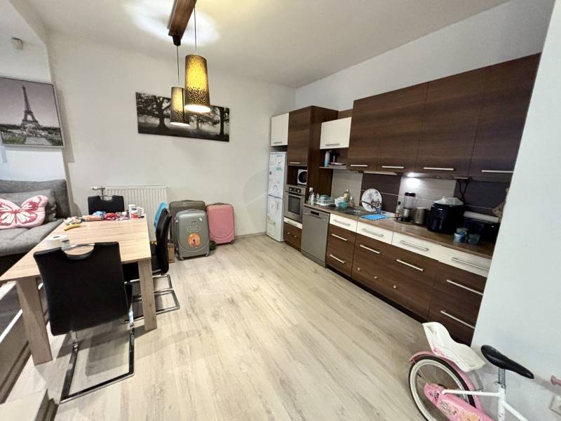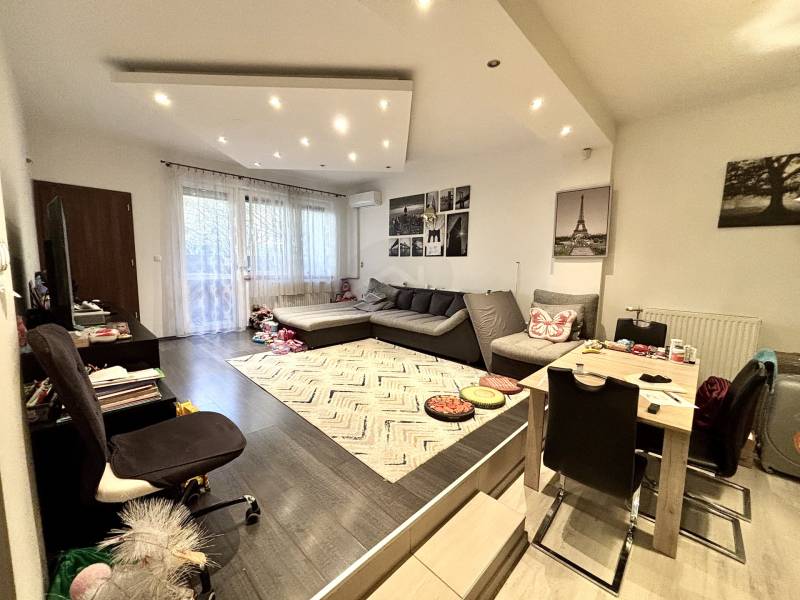 ELADÁSRA kínálom ezt a 66 m² alapterületű, 2 szobás elrendezésű, ZÖLDRE NÉZŐ ERKÉLYES, újszerű ingatlant a közkedvelt Ferencváros Rehabilitációs részén, a Vendel utcában. A csendes otthont adó ingatlan egy 20 éves, rendezett, liftes társasház földszintjén található. A biztonsági bejárati ajtón belépve egy praktikus, nagy tárolókapacitású előtérbe érkezünk, ahonnan jobb kéz felől helyet kapott egy különálló WC, illetve egy praktikus kamrahelyiség, amit jelenleg a bérlők mosókonyhának használnak. Továbbhaladva az amerikai konyhás nappaliba érkezünk, ami tágas élettérhént funkcionál. A konyha minőségi háztartási gépekkel felszerelt, a konyhabútor pedig kényelmes főzőfelületként szolgál. A nappaliból nyílik a TÁRSASHÁZ EGYIK ZÖLD KERTJÉRE NÉZŐ, 3 m²-es ERKÉLY, mely kiváló lehetőség, hogy madárcsicsergés kíséretében fogyasszuk el reggeli kávénkat, vagy este egy pohár bort. Szintén a nappaliból jutunk el a hálószobába, illetve a nagy méretű fürdőszobába, ahol egy tágas zuhanykabin és egy második WC is helyet kapott. A megfelelő hőmérsékletről a házközponti fűtés, illetve a hűtő-fűtő klíma gondoskodik. Az ingatlan dupla üvegű, műanyag nyílászárói redőnyökkel ellátottak. Az ingatlanhoz tartozik még egy mély, folyosói tároló, ami tovább növeli a lakók tárolási lehetőségeit. A lakók MINDKÉT igényesen gondozott TÁRSASHÁZI KERTHEZ rendelkeznek kulccsal, így a város egy KÖZPONTI RÉSZÉN élvezhetik a természet nyugalmát. A közös költség 39.200 Forint/hó, mely TARTALMAZZA A FŰTÉS ÉS VÍZ ÁTALÁNYT. Az ingatlan decembertől birtokba vehető.Az ingatlan kiemelkedő elhelyezkedése révén minden megtalálható a közelben, amire lakójának szüksége lehet! Egyetemek (pl. SOTE, NKE), iskolák, óvodák, üzletek, éttermek, parkok (pl. Kerekerdő Park), kulturális intézmények mind sétatávolságra találhatók. A gördülékeny közlekedést a az M3-mas metró, illetve a 23-mas és 24-es villamos biztosítja.Amennyiben ez a Ferencváros közkedvelt részén található, nyugalmas otthont adó ingatlan felkeltette érdeklődését, keressen bizalommal, szívesen mutatom!AUER Ingatlan