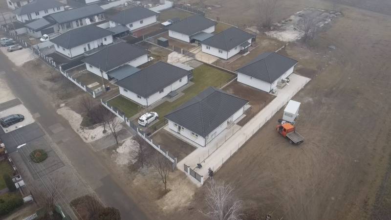 Sülysápon, a Határ úton, 960 m²-es telken kínálunk eladásra háromszobás, amerikai konyhás nappalival rendelkező, energiatakarékos családi házakat. Csendes környezetben, egymástól teljesen különálló házak, nincsen összeépítve. Megbízható, több referenciával rendelkező kivitelezőtől.Az épületek kiemeléssel, külön helyrajzi számon kerülnek nyilvántartásba, így önálló tulajdonként vásárolhatók meg. A házak elrendezése úgy lett kialakítva, hogy mindegyik ingatlanhoz közel 480 m²-es telekrész tartozzon.A szerkezet Porotherm P30N+F téglából épül, betonkoszorúval és fa födémszerkezettel. A lábazat 10 cm lépésálló polisztirollal, a homlokzat 10 cm grafitos szigeteléssel, míg a födém 25 cm ásványgyapottal kerül szigetelésre.Háromrétegű üvegezésű, hat légkamrás műanyag nyílászárókA megfelelő hőszigetelés mellett a megújuló energiát hasznosító gépészet is hozzájárul az alacsony fenntartási költségekhez. Fűtés: levegő-víz hőszivattyúVálasztható műszaki tartalom: Hidegburkolat: 3.000 Ft/m²Melegburkolat: 3.000 Ft/m²Beltéri ajtók: 30.000 Ft/dbFürdőkád: 40.000 FtCsaptelepek: 15.000 Ft/dbMagasabb árkategóriájú termékek választása is lehetséges, az árkülönbözet megtérítésével.Az építtető korábbi elkészült projektjei referenciaként elérhetőek és megtekinthetőek! A képeken meglévő ingatlan, referenciaképként szerepel. A jelen ingatlan is hasonló terv alapján épül meg.