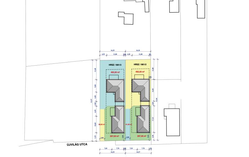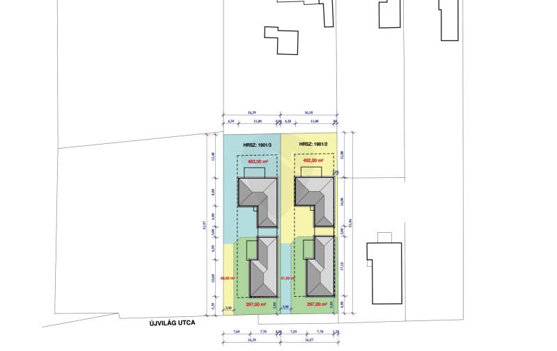 Kókán eladó 4db újépítésű ikerház külön kerített 530 m2 telkeken az Újvilág utcában!A házakat fedett gépkocsibeállóval kötik össze, így nincs közös fal.Az utcafronti házak ára 61.9m, a hátsó 58.9m Ft.-Telek mérete: 530 m²-Nettó hasznos alapterület: 97 m²-Földszintes ikerfélKivitelező és referencia:A kivitelező több azonos terv alapján készült ingatlant valósított meg Sülysápon és KókánElérhető támogatások:-CSOK Plusz-Otthon StartSzerkezet és szigetelés:-Falazat: 30 cm nútféderes tégla-Födém: fafödém-Tetőfedés: antracit színű betoncserép-Homlokzat: 15 cm EPS hőszigetelés-Padló: 10 cm Austrotherm AT-N100 szigetelés-Vízszintes födém: 25 cm ásványgyapot szigetelésNyílászárók:-Hat légkamrás, háromrétegű üvegezéssel szerelt ablakokFűtés:-Monoblokkos hőszivattyús rendszer-PadlófűtésAlap műszaki tartalom (választható keretösszegekig):-Hidegburkolat: 3.000 Ft/m²-Melegburkolat: 3.000 Ft/m²-Csaptelepek: 15.000 Ft/db-Kád vagy zuhanyzó: 40.000 Ft-Beltéri ajtók: 35.000 Ft/dbElektromos kiépítés:-Szobánként 3 konnektor-Nappaliban 4 konnektor + internet és kábel TV kiállás-Konyhában 6 konnektor-Világítás helyiségenként 1 pont-Kábeltévé előkészítésTovábbi lehetőségek:-Magasabb kategóriájú műszaki tartalom is választható a különbözet finanszírozásával-Riasztórendszer előkészítés-Kapumozgató elektronika előkészítésIgény esetén komplett tervdokumentáció és részletes műszaki leírás biztosítottÁtadás:2026. II. negyedévTeljes körű ingyenes tanácsadás, hitelügyintézésIntor Ingatlan