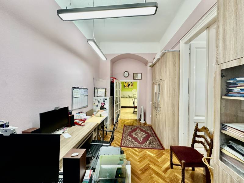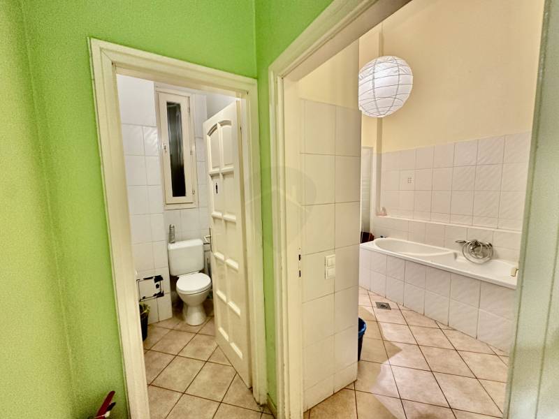 Eladó tágas, 85 m²-es, 3 szobás + amerikai konyhás lakás a VII. kerület szívében!Budapest belvárosában, a VII. kerület egyik legkedveltebb részén kínálunk eladásra egy 85 m²-es, földszinti (utcaszint felett kb. 1,5 m-rel elhelyezkedő), szép állapotú lakást egy rendezett belső udvarú társasházban.A lakás elrendezése praktikus:-tágas amerikai konyhás nappali,-3 külön nyíló szoba,-fürdőszoba és külön WC.Fűtés: saját gázcirkó, lapradiátorokkal.A nagy belmagasság lehetőséget ad galéria kialakítására, vagy akár több kisebb lakásra történő megosztásra is – befektetők számára különösen vonzó lehetőség.Jelenleg egy alapítvány bérli a lakást, akik 2026 februárjáig biztosan maradnak. Az új tulajdonosnak ezt a bérleti jogviszonyt vállalnia kell, ugyanakkor a bérlő nyitott a hosszabb távú megállapodásra is, így az ingatlan akár azonnali, biztos hozamot is jelenthet.A környék kiváló infrastruktúrával rendelkezik: éttermek, kávézók, közlekedés, bevásárlási lehetőségek pár perc sétára elérhetők.Megtekinteni délutánonként, vagy hétvégén lehetséges!