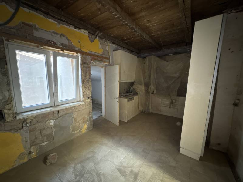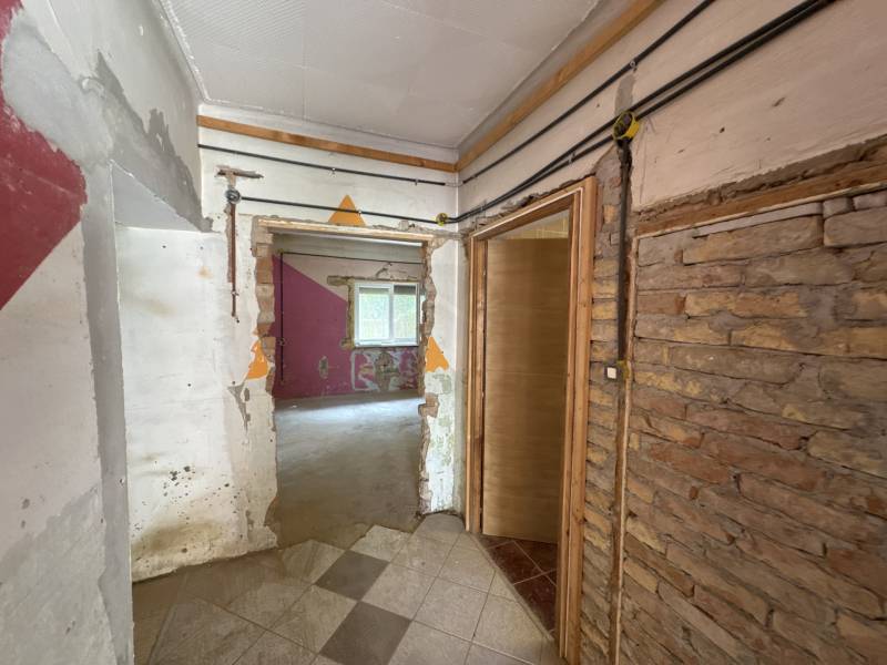 Eladó felújítandó családi ház Erdőkertesen, jó elosztás, garázs, napelem!Alapterület: 76,37 m² + 34 m² fedett teraszTelek: 675 nmSzobák száma: 2 szoba + konyha + fürdő + tárolóÁllapot: Teljesen felújítandóFűtés: egyedi (korábbi radiátorok részben megvannak)Parkolás: 2 állásos garázs elektromos kapuvalExtrák: napelemrendszer, beépített terasz, tágas kertLeírás:Erdőkertes csendes, zöldövezeti részén eladásra kínálunk egy 76,37 m²-es, kisméretű téglából épült családi házat, mely teljes belső felújítást igényel.Az ingatlan 2 szobából, konyhából, fürdőszobából, egy kis tárolóból, valamint egy fedett 34 m²-es teraszból áll. A mellékelt fotók jól mutatják az ingatlan jelenlegi állapotát, ami a kreatív vevők számára átalakítási szabadságot biztosít.A házhoz tartozik egy tágas, kétállásos garázs, mely elektromos kapuval rendelkezik. A garázs falai dekoratív bontott téglával burkoltak, a tetőszerkezet újabb, és a tér világos, rendezhető.A konyha és a szobák jelenleg bontott állapotban vannak – részben vakolatlan falak, új mennyezeti világítás, részben új nyílászárók és burkolat nélküli padló jellemzi őket. A konyhában néhány beépített elem már megtalálható.A hátsó kert gondozásra vár, de kiváló adottságokkal rendelkezik: zöld, napos, több gyümölcsfával és bokorral, valamint egy kis veteményes vagy játszótér is könnyedén kialakítható.További jellemzők:TéglaépítésűNapelemrendszerElektromos garázskapuRészben új nyílászárókFedett teraszCsendes, kertvárosi környezetFelújítóknak, befektetőknek ideálisKiknek ajánljuk?Felújításban gondolkodóknak, akik saját ízlés szerint alakítanák ki otthonukatBefektetőknek, akik értéknövelésben és kiadásban is gondolkodnakCsaládosoknak, akik szeretnének kertes házba költözni elérhető áron
