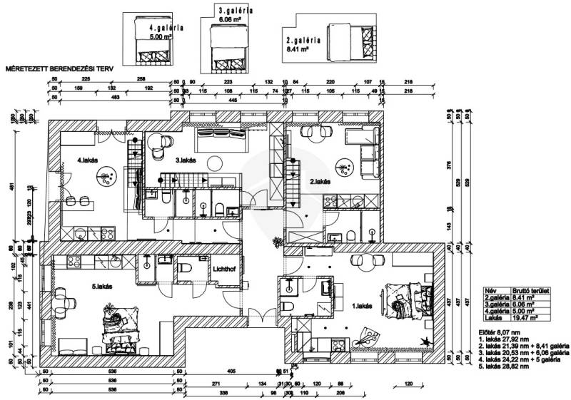 A VII. kerület, Dohány utcában kilátással a Rózsák terére eladó egy teljes körüen átalakított, első emeleti, 134 nm alapterületű, összesen 150 nm hasznos területtel rendelkező , öt lakássá alakított, külön bejáratokkal rendelkező lakás. 500 méterre található Állatorvosi egyetemen, tanuló külföldi diákok számára könnyen bérbeadható.-5 LAKÁS EGYBEN -FRISSEN FELÚJÍTOTT -ÉVES 13 MILLIÓ BEVÉTEL -3% CÉGES HITEL IGÉNYBE VEHETÓA LAKÁSOK TÖKÉLETESEN MEGÚJULTAKA teljes körű felújítás során cserélve lettek az elektromos- és vízvezetékek, az összes szaniter, új biztonsági bejárati ajtó és műanyag ablakok kerültek beépítésre. Az inverteres hűtő-fűtő klíma minden időben kellemes hőmérsékletet biztosít a lakásban, míg a téli hidegben norvég elektromos panelek segítenek a tökéletes hőmérséklet elérésében.A ÚJ konyhabútor beépített konyhagépekkel (elektromos főzőlap, elektromos sütő, beépített hűtő, led világítás) áll a lakás mindekori használójának a rendelkezésére. Fürdőszoba és a mosdó igényes burkolatokkal és magas minőségű, szaniterekkel került kialakításra a mindennapi használat számára. A vételár tartalmazza továbbá a lakáshoz illő design függönyöket, karnisokat, mennyezeti valamint oldalfali lámpákat minden helyiségben.Lakások méretei:1. apartman: 30 nm alapterület2. apartman: 24 nm alapterület + 8 nm galéria3. apartman: 23 nm alapterület + 6 nm galéria4. apartman: 29 nm alapterület + 5.00 nm galéria + 2 nm erkély5. apartman: 31 nm alapterületA vételárba beletartozik a részben gépesített konyhabútor, a teljeskörű berendezés további 2,5 MFt-ért megvásárolható minden lakás esetében.A lakás lokációja kiváló, infrastruktúrája egyedülálló, ezért tökéletes a tömegközlekedési lehetőségek:10 perc gyalogtávolságra található a legtöbb éjszakai szórakozóhely, valamint pár percre található villamosok, trolik és buszok segítségével könnyen elérhető a város bármely pontja.A környéknek köszönhetően a gasztronómiai és szórakozási élmények teljes tárháza megtalálható a környéken. Éttermek, kávézók, üzletek sokasága várja az itt élőket.Befektetőknek kiváló lehetőség, mert könnyen és gyorsan kiadható mind az 5 lakás hosszú távon.A vételár magában foglalja a gépesített konyhabútort és a fürdőszobai beépített bútorokat.Teljes berendezés további egyeztetés alapján lehetséges.