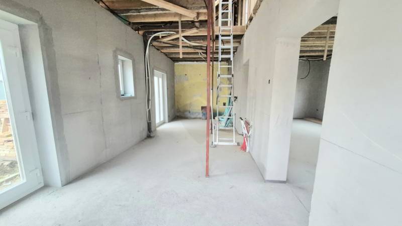 Baján, a Homokváros csendes részén kínálunk megvételre egy 375 m²-es, telken álló, kelet–nyugati fekvésű, 120 m²-es, ikerház jellegű családi otthont. Az ingatlan jelenleg felújítás alatt van, melynek a készültségi állapota mintegy 70%-os, így különleges lehetőséget nyújt arra, hogy új tulajdonosa saját stílusára és igényeire szabva fejezze be, miközben a legköltségesebb és legidőigényesebb munkák már elkészültek.A ház új Bramac cserepezésű tetőt kapott, a teljes víz-, villany- és szennyvízhálózat korszerűen kiépítésre került, új, 3×25A teljesítményű villanyórával. A padlófűtés csövezése már a szerelőbetonban található, a háromrétegű műanyag nyílászárók és a biztonsági bejárati ajtó pedig gondoskodnak a komfort és az energiahatékonyság alapjairól. A kémény elkészült, így a fűtési rendszer szabadon megválasztható.A földszinten egy tágas nappali–konyha tér, hálószoba és fürdőszoba kerülhet kialakításra, míg a tetőtérben további szoba és fürdő kaphat helyet. A hátsó melléképület pedig számos lehetőséget rejt: kialakítható belőle külön garzon, vendégház, műhely, iroda, edző- vagy wellnessrészleg, de akár kiadásra alkalmas apartman is.Az udvarban a garázs alapja már elkészült, így a parkolás fedett formában is könnyen megvalósítható. A nyugodt környezet, a praktikus elrendezés és a befejezés szabadsága együtt egy olyan ingatlant kínál, amely egyszerre jelent biztos értéket és személyre szabható otthont.Irányár: 59.000.000 Ft