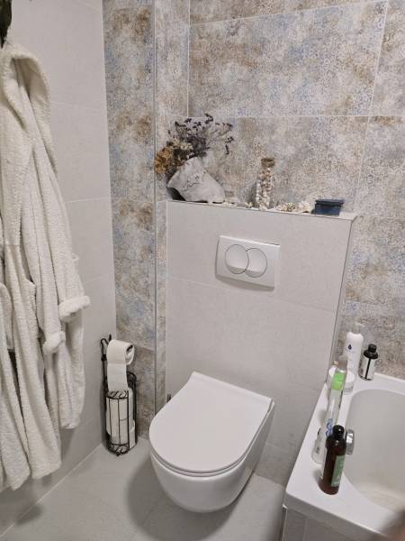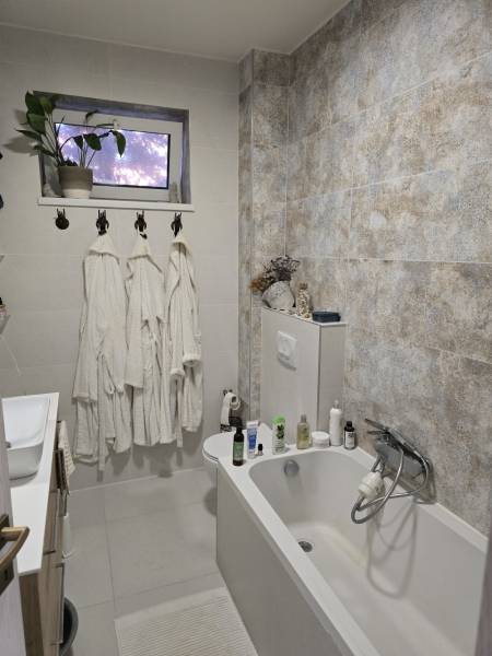 Egyedi kialakítású téglalakás napelemmel és szauna házzal Budapesttől 25 percre Gödöllőn.Csendes, családbarát lakóparkban eladó egy 3 szobás, alacsony rezsiköltségű újszerű állapotú, 94,50 m2-es, földszinti, hőszigetelt téglalakás, 80 m2 kerttel, napelemes rendszerrel és finn elektromos szaunával. A lakópark békés, szép erdő melletti környezetben található.Helyiséglista:előtér - mosdó-wc - konyha-étkező-nappali-fedett terasz - előtér - fürdő-wc - szoba - szoba - kert- szaunaházA lakás kiváló elosztással rendelkezik, meleg, déli tájolású nagy ablakokkal, fedett terasszal. Az öntözőrendszerrel kialakított kertben fatüzelésű erdélyi fürdődézsával és egy prémium kivitelezésű 6 személyes finn szaunával, a nyári madárcsicsergés mellett még a téli hétköznap esték is meghitt nyugalomban és teljes feltölődésben telnek.A lakás mind esztétikailag, mind műszakilag kiváló állapotban van:A szobákban, a konyhában és a nappaliban eredeti svéd tölgyfa padló, az előtérben és a fürdőben gyönyörű kerámia burkolatú a padozat. Az amerikai konyhás nappaliban fa konyhabútorok egyedi tervezésűek, tömör tölgyfa munkalappal, beépített elektromos elektromos sütővel, gáz főzőlappal, elektromos páraelszívóval, és mosogatógéppel valamint elektromos szelektív kukával.A külső műanyag nyílászárók 3 rétegű hőszigetelt üvegezésűek, míg a beltéri ajtók fából készültek, üveg berakással. A fűtés padló és falfűtés, a melegvizet is kondenzációs kazán készíti.A tetőn 8,5 kWp teljesítményű napelem rendszer biztosítja a lakás teljes elektromos fogyasztását, sőt az 5000 kWh többlettermelés akár még 2 elektromos autó töltő éves díjmentes fogyasztását is fedezni tudja, vagy egy elektromos bojler beépítésével 0 rezsiköltségű ingatlan alakítható ki, hiszen még 7 évig a szaldó elszámolás biztosított. Saját autóbeálló is tartozék az ingatlanhoz.A 80 m2-es kertben kialakított kis magaságyásokban hobbikertészkedéssel lehet kikapcsolni a munkanapok után. A kert ékköve a mészkőből faragott kerti kút és a 6 méter magas fekete bambusz sor mellett, egy 6 személyes, egyedi tervezésű elektromos finn, csomómentes, rezgőnyár szauna hozzá tartozó hidegvizes merülő dézsával. A hűvösebb hónapok komfort élményét egy erdélyi fatüzelésű dézsa is fokozza.A lakás parkos, erdős, nyugodt, zöldövezetben található, játszótérrel és biztonságos környezettel. Ugyanakkor minden városi szolgáltatás csak pár perc távolságra található.Iskola, óvoda, bölcsőde, uszoda, orvosi rendelő és gyógyszertár, vonat és buszállomás valamint autópálya autóval elérhető 5-10 percen belül. A tulajdonviszonyok rendezettek, rövid időn belül birtokba vehető. Helyi kontakt: 30-921-9241