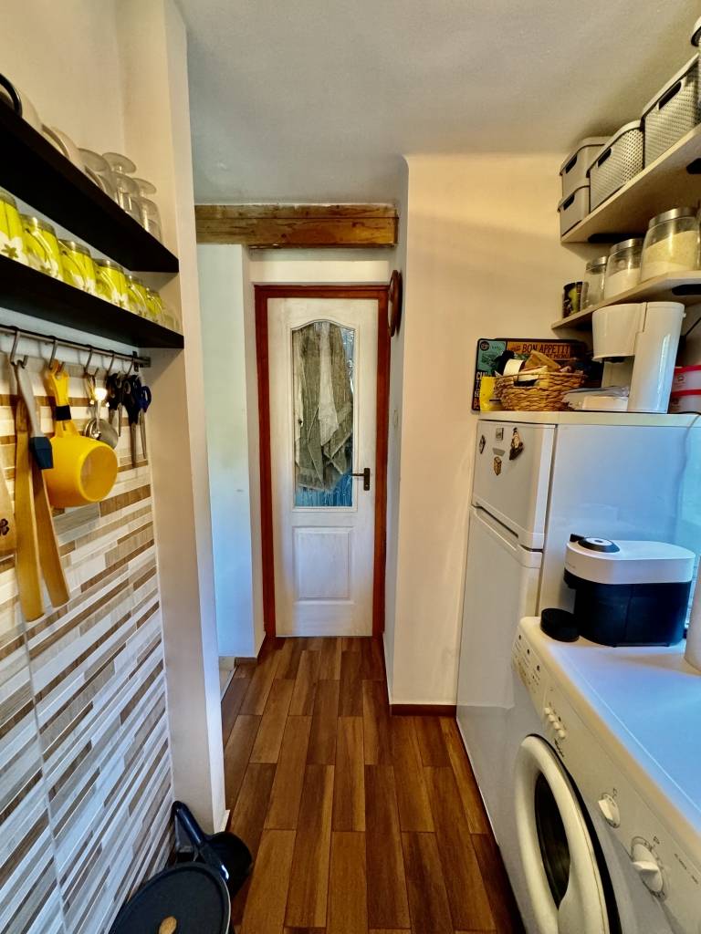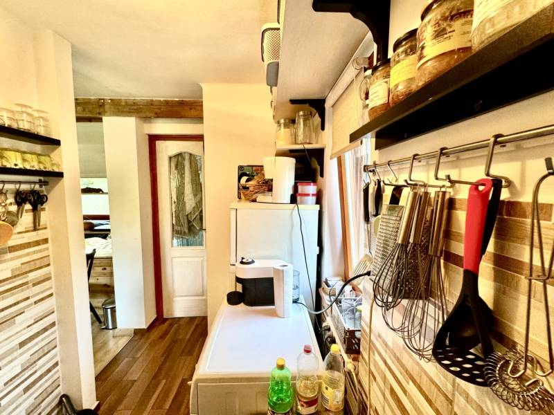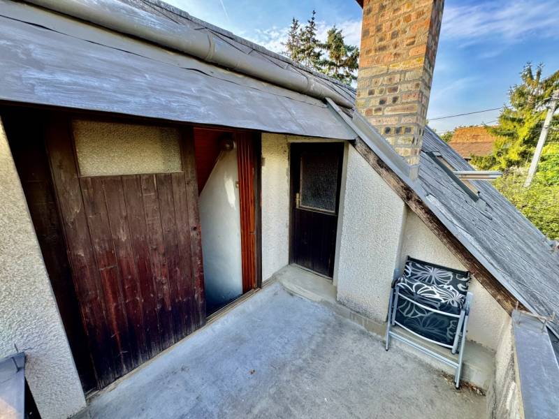 A fürdőszoba közlekedőjéből nyílva egy ajtón keresztül bejutva találjuk az 1,2 m²-es különálló WC-t.A szintek közti közlekedést az ingatlanon belül kialakított lépcsőházon keresztül, stabil vasszerkezetű lépcsőn tudjuk megtenni.A lépcsőházból a felső szintre érkezve egy 6 m²-es erkélyen találjuk magunkat. A tetőtér 11,5 m²-es szobája erről az erkélyről nyílik. Ehhez az emeleti szobához a szoba végéből nyílóan tartozik egy mellékhelyiség (WC+kézmosó) is. Az erkély igény esetén beépíthető, így akár teljes értékű felső szint varázsolható belőle, ezáltal a jövőbeni otthonná formálás lehetősége megvalósítható.Műszaki paraméterekA ház 27-es Porotherm falazatból épült 1993-ban. Fatüzelésű kazán biztosítja a meleget, kiegészítésként villanyradiátorral is kényelmesen fűthető. Az áramellátásról EV kapcsolós 40 Amperes elektromos kialakítás gondoskodik.Az épületben elhelyezkedő minden helyiség ablakkal rendelkezik, ezáltal jól szellőztethető és mindenhova jut természetes fény.Az alsó szinten nagyméretű, német gyártmányú fából készült bukó-nyíló ablakok szúnyoghálóval és redőnnyel is fel vannak szerelve.Gáz nincs az épületben, de a gázcsonk udvaron belülre be van vezetve. A víz és villany be van vezetve az épületbe, a szennyvíz közvetlenül csatornára van kötve. Az ingatlan teljes műszaki felújítása 7 éve történt meg, esztétikai felújítás a lakótéren belül 3 éve. A kertet napfény simogatja, amit az utcától egy vasszerkezetre épült, fával burkolt úszókapu választ el. A kapu jelenleg manuális használható, de távvezérelhetővé alakítható. Az udvarban tudjuk leparkolni az autónkat, de a kapu előtt is kényelmesen meg lehet állni. A tágas kert jól használható pihenésre, veteményes kialakítására, jelenleg is elhelyezkedik rajta néhány gyümölcsfa.Surányban a helyi kisboltok biztosítják a mindennapi szükségleteket, de ha valami különleges kellene, a közeli 11-es Főúton minden megtalálható. Nagyobb élelmiszerüzletek, éttermek, cukrászdák, gyógyszertár, óvoda, iskola.Ez a ház nemcsak egy ingatlan, hanem egy életstílus, ahol a természet szeretettel öleli a hétköznapokat. Csend, szabadság, közelség a városhoz és egy kis falubeli közösség. Itt több mint egy otthon, életérzés születik.Surány mára már nem csupán üdülőövezet, a telekkönyvi valóság szerint háromnegyed része lakóövezet, így egyensúlyban tartja a fejlesztést és a nyugalmat. A környék egyik legnagyobb kincse a csend, a kristálytiszta levegő, a természet hangjai. A sziget egyedülálló, távol a főváros forgatagától, mégis csak pár kilométerre a várostól.A szépen karbantartott homokos Duna-part ideális családi fürdőzésre, és közben ott a nyugalom és a természet közelsége – igazi élmény.Jöjjön el, nézze meg és tegye meg ajánlatát!B.T.