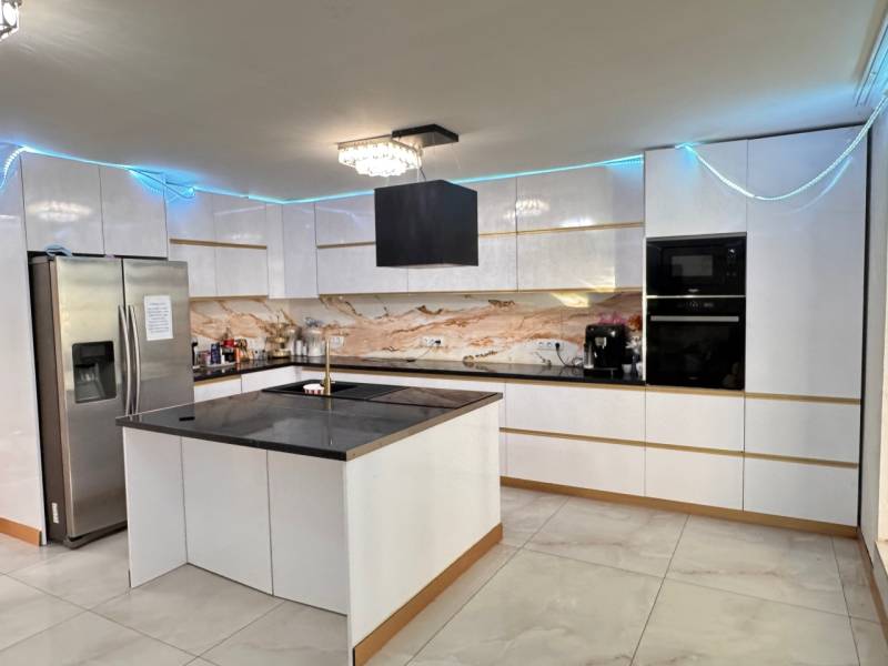 CSAK AZ IRODÁNK KÍNÁLATÁBAN! XXII. kerületben, Budafokon kínálunk eladásra egy FELÚJÍTÁS ALATT ÁLLÓ, nagy nappali + 4 szobás, 2 fürdőszobás, étkező-konyhás 214 m²-es lakóterű magasföldszinti CSALÁDI HÁZAT, melynek az alsó szintje plusz 110 m2, amely egy 647 m²-es telken helyezkedik el.A házba belépve egy tágas nappaliba érkezünk, innen tovább haladva található egy étkezős - konyha, beépített modern konyhabútorral. Széles folyosóról nyílnak a gyerek szobák, a nagy kádas fürdőszoba, és két nagy méretű hálószoba saját gardrób helyiségekkel. Az egyik hálószobához tartozik még egy zuhanyozós fürdőszoba WC-vel és egy gardrob szoba.A másik hálószobához is tartozik külön gardrob szoba.A ház alatti alsó szint 110 m2, ahol beépített konyha, kamra, kis szoba, zuhanyzós fürdőszoba WC-vel is kialakításra került, plusz egyéb tárolásra alkalmas terület is maradt.LÁSD AZ ALSÓ SZINT ALAPRAJZÁT !A ház ideális nagycsaládosoknak, de két generációnak is kényelmes tereket biztosít, a 214 m²-es lakótér, és az alsó szint helyiségei. LÁSD A LAKÓTÉR /magasföldszint/ HELYISÉGEINEK ELRENDEZÉSÉT AZ ALAPRAJZON !MŰSZAKI JELLEMZŐK: - Az épület az 1960-1970-es években épült vegyes falazattal. - 2024-2025-ben teljes körű felújításon esett át.- ennek részeként megtörtént a tetőcsere, vasbeton födém került kialakításra- a teljes gépészet és fűtésrendszer megújult - a nyílászárók cseréje is megtörtént, háromrétegű, hő- és hangszigetelő műanyag ablakok, új bejárati ajtó került beépítésre - a ház külső falaira 15 cm-es dryvit hőszigetelés került - a fűtés hőszivattyúval történik, minden helyiségben padlófűtéssel.PARKOLÁS: A kertben több autó számára térkövezett felszíni beálló biztosított.EXTRÁK: A házban 5 db hűtő-fűtő klíma található.KÖRNYEZET: Az ingatlan csendes, kertvárosias környezetben található, kiváló tömegközlekedéssel és közeli bevásárlási lehetőségekkel (ALDI, Campona, Tesco). A közelben óvoda, két tannyelvű iskola és gimnázium is működik.. Autóbusszal 15–20 perc alatt elérhető a 4-es metró kelenföldi végállomása. Budapest belvárosa pedig sétatávolságban lévő buszjáratokkal fél óra alatt megközelíthető.Az ingatlan ELŐRE EGYEZTETETT IDŐPONTBAN tekinthető meg – akár hétvégén is.KÉSZPÉNZES ÉRDEKLŐDŐK JELENTKEZÉSÉT VÁROM !FORDULJON HOZZÁM BIZALOMMAL, VÁROM HÍVÁSÁT, ÉRDEKLŐDÉSÉT!(G.I.)