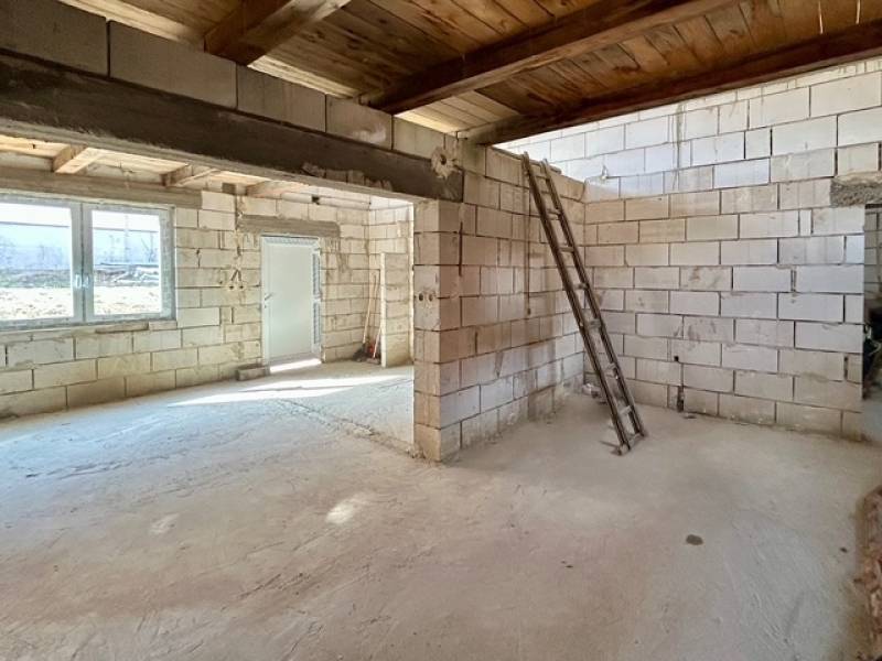 Eladó Vácduka csendes, aszfaltozott utcájában egy 148 m² alapterületű, szerkezetkész családi ház.Az ingatlan ideális választás azoknak, akik elkerülnék a bontási munkálatokat, és egy már korszerűsített, szilárd alapokon nyugvó házat szeretnének saját igényeik szerint befejezni. A telek adottságai:A 2398 m²-es, tágas telek közvetlen erdőkapcsolattal rendelkezik, a kert végét fás terület határolja, biztosítva a privát szférát és a nyugalmat. A telek méretéből adódóan (Lke-1 besorolás, 30%-os beépíthetőség) megosztható, így hosszú távon további lehetőségeket rejt. Az Ytong téglából épült ház kivitelezése évekkel ezelőtt kezdődött, majd egy hosszabb szünetet követően 2025-ben az épület jelentős állagmegóvási és korszerűsítési munkálatokon esett át. A felújítás során az alábbi fejlesztések valósultak meg• Tető: A tetőszerkezet teljes felújítást kapott új héjazattal és kész belső szigeteléssel.• Nyílászárók: Új, hőszigetelt műanyag nyílászárók kerültek beépítésre.• Szerkezet: A statikailag nem megfelelő részeket eltávolították. A belső térben jelenleg csak a főfalak állnak, így a válaszfalak elhelyezése és a belső elrendezés még teljesen szabadon alakítható.• Födém: A fa födém részben elkészült; a nyitott szakaszok lehetőséget adnak galéria kialakítására vagy a teljes beépítésre. Közművek:• Víz bevezetve• Villany bekötve, a mérőóra felszerelve; a mérőhelynél kialakított, működő konnektor pedig azonnali áramvételi lehetőséget biztosít• Gáz a telken belül• Csatorna a telken belül Környezet és elhelyezkedés:Az ingatlan infrastruktúrája kiváló: iskola és óvoda 250 méterre, orvosi rendelő és posta 700 méterre található. Vác mindössze 5 perc, Budapest pedig az M2-es úton 30 perc alatt elérhető. A tömegközlekedést rendszeres buszjáratok és a váci zónázó vonatok biztosítják. A ház azonnal birtokba vehető, az építkezés a rendelkezésre álló dokumentumoknak köszönhetően késedelem nélkül folytatható.Ez az ingatlan ideális választás lehet azok számára, akik:• saját otthonukat szeretnék kialakítani,• nyugodt, természetközeli környezetre vágynak,• befektetőknek, akik jó elhelyezkedésű fejlesztési lehetőséget keresnek Ha felkeltette érdeklődését az ingatlan, szívesen adunk további információt, vagy egyeztethetünk egy személyes megtekintést. Amiben segíteni tudjuk ingatlanvásárlását:•jogi háttér•földhivatali ügyintézés•ingyenes, bankfüggetlen hitelügyintézés (CSOK+, Babaváró, Otthon Start)•energetikai tanúsítvány elkészítése•biztosítás•belsőépítész