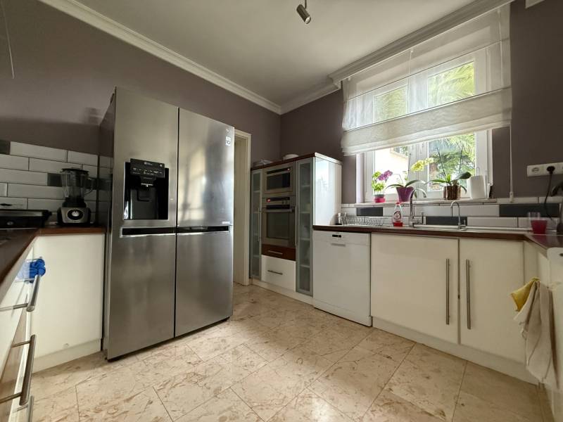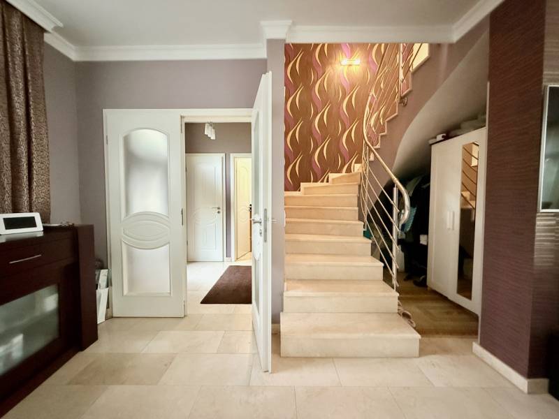 Tér együttéléshez, nyugalomhoz – többgenerációs családi ház a Bokros utcábanSzentendre egyik nyugodt, biztonságos részén található ez a háromszintes, közel 320 m²-es családi ház, amelyet kifejezetten többgenerációs használatra alakítottak ki. Három, külön bejáratú, teraszos lakóegység kapott benne helyet, így a közelség és az önállóság egyszerre tud jelen lenni a mindennapokban.A ház 2005-ben épült, masszív 38-as téglafalazattal, korszerű szigeteléssel. A fűtést kondenzációs kazán biztosítja, padlófűtéssel és klímaberendezésekkel kiegészítve, így a komfort egész évben kiegyensúlyozott. A belső terek világosak, jól tagoltak, a hangulat nyugodt és élhető.Az alsó szint praktikus kiegészítő funkciókat kínál: háromállásos garázs, borospince, konditerem és több tárolóhelyiség áll rendelkezésre. A gondozott kert és a teraszok Szentendrére és a környező zöldövezetre nyíló panorámája természetes része a mindennapoknak.A ház kamerával és sorompóval védett magánúton közelíthető meg, ami valódi nyugalmat és biztonságot ad a környezetnek.Ez az ingatlan nem egy élethelyzetre készült, hanem hosszú távra. Olyan családok számára, akik együtt szeretnének maradni, de mindenkinek fontos a saját tér is.Szentendrén ritkán adódik ilyen adottságú lehetőség – érdemes személyesen is megtapasztalni.