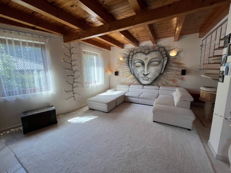 Exkluzív családi ház Veresegyház legszebb, zöldövezeti részén!Nyugodt, természetközeli környezetben kínálunk megvételre egy magas műszaki tartalommal, kifinomult ízléssel megépített prémium családi otthont, amely a tágas élettereket, az időtálló minőséget és a privát életstílust helyezi előtérbe.Reprezentatív terek & elegáns arányok:• 297 m² gondosan megtervezett lakótér• 6 méteres belmagasságú, különleges kivitelezésű, galériás nappali, kandallóval• nagyvonalú amerikai konyha kényelmes étkezővel• többfunkciós tetőtéri szint – hatalmas dolgozószoba, hálószobák, vendégtér vagy privát lakrész kialakításáraA belső terek tágas és harmonikus arányai, valamint a természetes fény jelenléte jellemzi az egész épületet.Prémium anyaghasználat & beépített megoldások:• porotherm téglából épült, szigetelt ház• különleges, fa oszlopos tartószerkezetek• számos egyedileg tervezett beépített bútor• diszkréten integrált tárolómegoldások• minőségi kivitelezés, időtálló részletekPrivát kert & kültéri luxus:• 800 m²-es, parkosított, intim kert• automata öntözőrendszer kiépítve• 60 m²-es DNy-i tájolású, fedett terasz, székely dézsával• két különálló faház - egy kisebb és egy nagyobb tároló• tökéletes helyszín pihenéshez, családi eseményekhez, vendéglátáshozKényelmes parkolás & praktikum:• garázs• fedett autóbeálló• bőséges tárolási lehetőségek a telken és az épületen belül isKorszerű technológia & fenntartható komfort:• padlófűtés kondenzációs kazánról, radiátorokkal kiegészítve• alternatív megoldások: kandalló, ionkazán• napelemek, napkollektor, klímaberendezések• víz kezelő rendszer, riasztó• energiahatékony, tudatosan kialakított gépészetKitűnő lokáció – természet és elérhetőség egyensúlya:• Csendes, zöldövezeti környezet• Budapest gyorsan és kényelmesen elérhető• Ideális külföldi vásárlók számára is, akik értékelik a repülőtér közelségét és a prémium életstílustEz az otthon azok számára készült, akik nem kompromisszumokban, hanem életminőségben gondolkodnak.