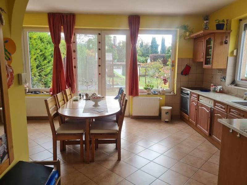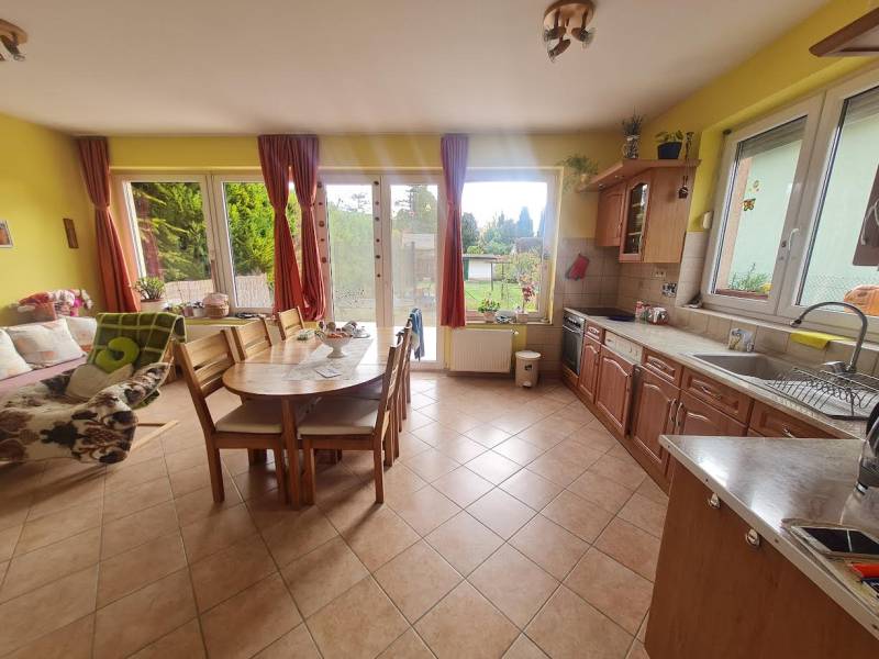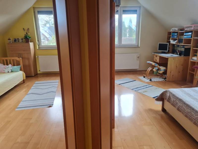 CSILLAGHEGY DUNA FELŐLI OLDALÁN 2004-BEN ÉPÜLT 5 SZOBÁS HÁZ ELADÓ!Csillaghegy Duna felőli oldalán 599 m2-es telken csendes mellékutcában eladó ez a jelenleg kétlakásos önálló családi ház.A ház nagyobbik része 2004-ben újonnan épült, DK-i tájolású, szép állapotú, belső kétszintes, terasz és kertkapcsolatos nappali, konyha, étkező, kamra, 3 hálószoba, két fürdőszoba van ebben a részben.A kisebbik része a 30-as években épült, DNY-i tájolású, földszintes, 1 nagy szoba, konyha, étkező, fürdőszobával. Ez a rész felújítandó, tetőtere igény szerint beépíthető.Mindkét részben minden közmű önállóan mérhető, külön bejáratú, de egy fal lebontásával a két rész összenyitható.2004-es műanyag Hofstadter nyílászárók vannak az épületben, 12 m2-es száraz pince, kondenzációs kazán, padló és radiátoros fűtés, szép beltéri ajtók, beépített konyhabútor gépekkel, nagy beépített szekrény, 25 m2-es terasz.Kiváló idős szülővel, vagy nagy gyerekkel költözőknek is! A teljes földszint a teraszok nélkül 113 m2, az emelet pedig 41 m2.A kert teljesen sík, nagy, a szomszédok rendezettek, kedvesek. A közlekedés kiváló, a busz 5 perc gyalog.Rugalmasan, bármikor megnézhető!