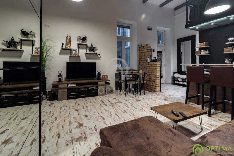 TELJESKÖRŰEN FELÚJÍTOTT, BELSŐ KÉTSZINTES LAKÁS A CORVIN PLÁZA MELLETT Budapest VIII. kerületében, a Corvin-negyedben kínálom megvételre ezt a tulajdoni lap szerint 45 m2 alapterületű, a valóságban 62 m2-es földszinti téglalakást. Az ingatlannak több mint 5,5 méteres belmagasságának köszönhetően egy acél szerkezetes galéria került kialakításra, melynek köszönhetően egy teljes értékű belmagassággal rendelkező ,14 m2-es hálószoba került kialakításra. Továbbá még egy 3 m2-es galéria került kialakításra a konyha felett is, ami tovább növeli az életteret. A lakás 2017-ben teljes körű felújításon esett át, melynek során: - cserére kerültek a nyílászárók (ablakok és bejárati ajtó egyaránt), - cserére kerültek az elektromos vezetékek, - cserére kerültek a vízvezetékek, - beszerelésre került 2 bojler, ami a melegvíz ellátást biztosítja, - és cserére kerültek a burkolatok, - továbbá kialakításra került még egy külön gardróbszoba is. Az utcán a kerületi lakosok ingyenesen parkolhatnak, igény esetén a Corvin Plázában fedett / őrzött garázsbeálló bérelhető. A beépített konyhabútor és konyhai műszaki gépek a vételár részét képezik. További bútorok egyéni megállapodás alapján alku tárgyát képezhetik. A lakás havi közös költsége 13.500 Ft, mely tartalmazza a felújításai alapot, a közüzemi fogyasztások pedig saját mérőórák által mért fogyasztás alapján fizetendők. További részletekért és az ingatlan megtekintése miatt VÁROM HÍVÁSÁT akár hétvégén vagy az esti órákban egyaránt!