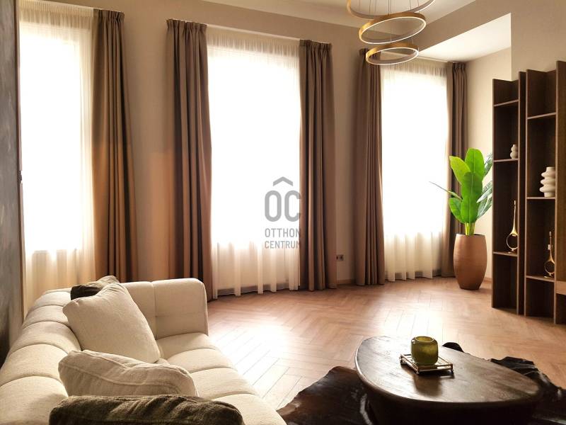 Nagypolgári életérzés modern köntösben a belváros közepén. Nagyvonalú térhasználat, elegáns miliő, nyugalom.A LAKÁSRÓL:- 88 nm alapterület, tágas, 3 ablakos nappali (30 nm)- két kényelmes méretű hálószoba (13 és 20 nm), a nagyobb közvetlen fürdőszoba kapcsolattal- külön helyiségben lévő, mégis a nappalihoz jól kapcsolódó konyha-étkező - teljes körű, precíz felújítás, magas minőségű anyaghasználattal- pasztell, meleg színek, jó fényviszony (déli tájolás)- a lakás melegét és meleg víz ellátását házközponti fűtés adja, a hűtésről klíma berendezések gondoskodnakA TÁRSASHÁZRÓL: - 1879-ben épült klasszicista, kívül-belül szép állapotú, liftes épületA KÖRNYEZETRŐL:- az ingatlan a belváros szívében helyezkedik el pár perces sétára a Nyugati tértől, a Parlamenttől, a Szent István Bazilikától- könnyű sétával elérhetők a mindennapokban szükséges szolgáltatások (élelmiszerbolt, patika, éttermek, kávézók, orvosi rendelő stb.)- parkolásra az utcán vagy a környező parkolóházakban van lehetőségAmennyiben egy elegáns belvárosi otthont keres, ahol a tágas központi tér kiváló lehetőséget biztosít családi és baráti összejövetelekhez, két egymástól távol eső hálószobája pedig külön életteret biztosíthat a családtagoknak, ezt a lakást érdemes megnéznie. Elosztása lehetővé teszi a dupla funkciót is, otthon és iroda vagy rendelő egy helyen. A lokáció értékálló befektetést biztosít. Ha el tudja képzelni Magát ebben a lakásban jöjjön el nézze meg személyesen is, nem fog csalódni! Várom hívását.