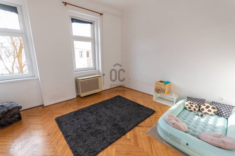 Kedves Érdeklődő!Kínálunk egy rugalmasan alakítható, ideális elrendezésű első emeleti, fényárban úszó lakást. A nyílászárók kiosztása alapján a nappali + 2 hálószobás elrendezés is könnyedén megvalósítható.A ház felújítása aktív és folyamatos, az új tetőszerkezet már elkészült, a külső homlokzat felújítása pedig nemsokára befejeződik. Ezt követi majd a lépcsőház és a belső homlokzat.Az ingatlan mérete és ára alapján a 3%-os támogatott Ottonteremtési hitel is igénybe vehető.Amennyiben felkeltettük érdeklődését, keressen bizalommal!