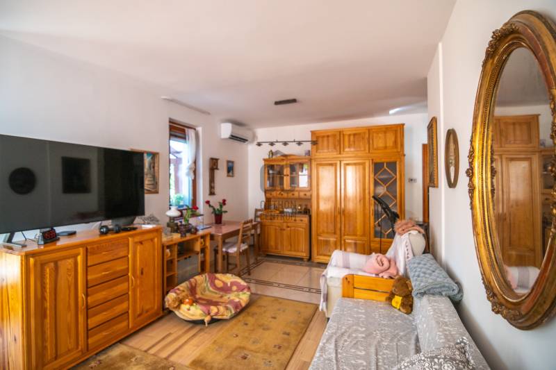 Hangulatos Újszerű lakás Kertkapcsolattal és Kocsibeállóval a Rókahegy lábánál!Eladó egy hangulatos újszerű földszinti lakás kertkapcsolattal, terasszal és kocsibeállóval a Rókahegy lábánál! Holtig tartó haszonélvezettel terhelt lakás.A harmadik kerület szívében hangulatos tó mellett eladó ez a tökéletes közepes méretű lakás, egy 2005 - ben épült 4 lakásos Önálló kerttel rendelkező társasház földszinti részén.A lakás teljesen privát megközelítésű, tehát a társasház mellett elhaladva külön bejárattal rendelkezik. Az egész társasház környéke nagyon hangulatos, illetve maga a kert is rendkívül gondozott. Szép sövény, gondozott fák, privát kertrész jellemzi.A lakás 2 hálószobás illetve egy dolgozószobával is rendelkezik, a nappalit világos falig érő szigetelt ablakok jellemzik. A nappaliból egy nagy 14 nm es teraszra érkezünk mely kiválóan alkamas sütögetésre, illetve kerti partikra.A lakáshoz tartozó privát használatú kert kb 180 nm.A telken összesen két ilyen társasház található de a második csak két lakásos. A telek végében egy még nagyobb - már közös használatú kertrész található, ahol nyitott privát kocsibeállóhely is tartozik a lakáshoz.A lakás jól felszerelt modern, klímás lakás.FONTOS, hogy Holtig Tartó haszonélvezettel eladó! Egy kedves aranyos házaspár lakja!Érdeklődni csak Nálam!