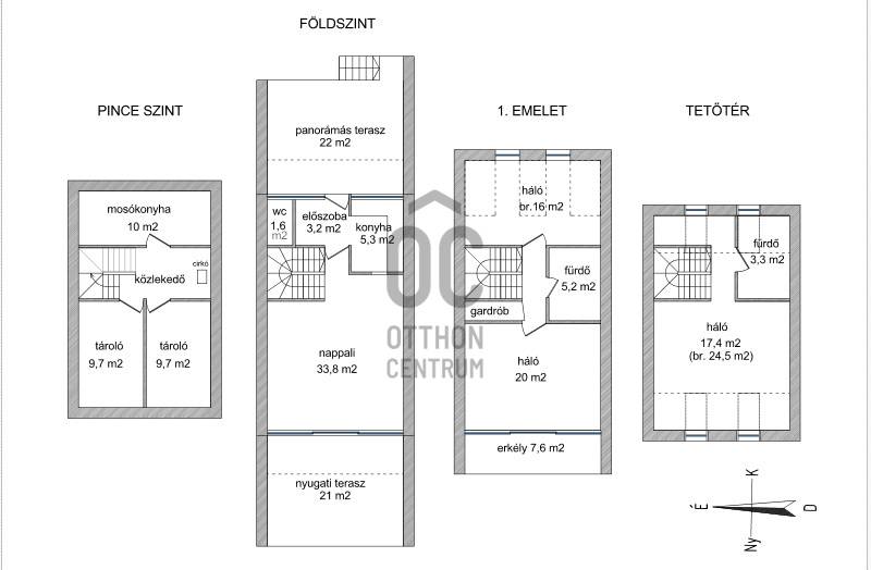 Budapest XII. kerületében, Kútvölgyben, a Szabadság-hegyen egy kivételes adottságú, panorámás, kertkapcsolatos sorházi lakás, csendes, zöldövezeti környezetben. A természet közelsége, a madárcsicsergés és a nyugalom garantált, miközben a városközpont 20 perc alatt elérhető (Széll Kálmán tér, Déli pályaudvar).FŐBB JELLEMZŐK•Lakóterület: 125 nm•Teljes hasznos alapterület: 198 nm (pince + teraszok + erkély)•4 belső szint•2 kertkapcsolatos terasz (20–20 nm)•Erkély (7,5 nm)•3 hálószoba•2 fürdőszoba+ wc•Szuterén: 40 nm•Saját kocsibeálló•Nincs közös költség•Alacsony rezsiELHELYEZKEDÉS•Budapest XII. kerület, Kútvölgy•Csendes, zöldövezeti környezet•20 perc a belváros•Autóval és tömegközlekedéssel is kiváló•Két utcáról megközelíthető•Közel: Normafa, János-hegy, Széchenyi-hegy•Magyar iskola 10 perc, Német iskola 5 perc sétáraKelet–nyugati tájolás, egész napos benapozottság.A 4 szintes lakás kiválóan szeparált, ideális nagycsaládosoknak, többgenerációs együttélésre vagy otthoni munkavégzéshez.A nagy üvegfelületeknek köszönhetően a lakás világos és napfényes. A nappali és a lépcsők ütésálló parafa burkolatot kaptak, az emeleti hálószobák padlószőnyegesek. Az egész lakás meleg, otthonos hangulatú.Fűtés és meleg víz: cirkógáz kazán.4 lakásos ház, minden lakáshoz saját előkert tartozik, a telek többi része közös használatú.A hegyoldali beépítés miatt hosszú lépcsősor vezet a házhoz, ezért mozgáskorlátozottak számára nem ajánlott.Amennyiben felkeltettük érdeklődését, keressen bizalommal.Ez az ingatlan a \"Hűség csomag\" megbízási portfólióhoz tartozik. Részletek az Otthon Centrum weboldalán.
