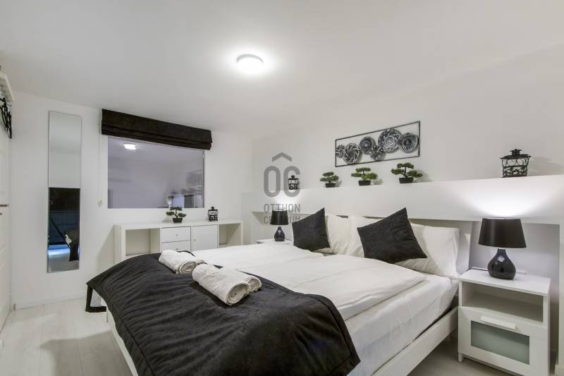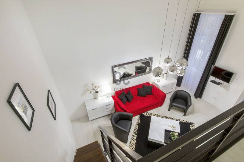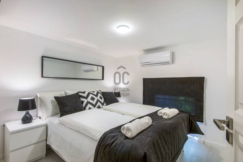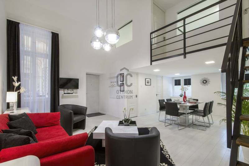 A Szent István körút 5. kerületi oldalán eladó lakás/komplett befektetői ingatlan.A kettéválasztott lakás kulcsrakész üzleti befektetés, akár hosszú, akár rövid távú bérbeadásra, de családoknak is ajánlott. Mindkét szempontból kiváló elhelyezkedés jellemzi az első emeleti ingatlant.Jelenleg nagy hozammal rövid távon hasznosított, érvényes szálláshely üzemeltető engedéllyel rendelkezik, amely a jogtulajdonos Bt. átvételével jogfolytonosan továbbvihető. Mivel új engedély kiadása nem lehetséges, ez ritka érték a belvárosban, különösen az 5. kerületben!A két lakrész mindegyike amerikai konyhás nappalival és 2 hálószobával rendelkezik, 2, ill. 1 fürdőszobával, így 2x6 fő kényelmes elszállásolására alkalmasak.A vételár tartalmazza a teljes berendezést és gépesítést, mindent, ami az azonnali továbbüzemeltetéshez szükséges.A lakás alapterület 78 m2 (tulajdoni lapon), amelyet összesen 32 m2 felső szint egészít ki, ami a 430 cm-es belmagasságnak köszönhetően nem galéria (hálószobák, fürdőszoba található itt zárható ajtókkal 210 cm-es belmagassággal).