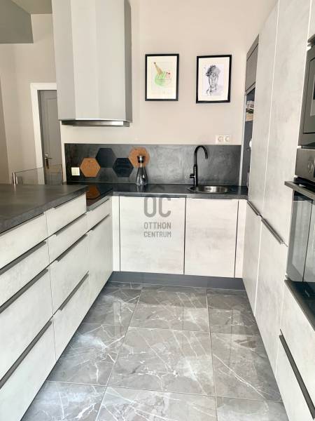 Az I. és II. kerület határán, a Batthyány tér és a Széll Kálmán tér között kínálunk eladásra egy 156 m²-es, átgondolt elrendezésű, teraszos, városi panorámás lakást modern épületben!A lakás leírásaEz a kifinomult, 5 szobás otthon egy gondosan karbantartott, liftes társasház teljes 5. emeletét foglalja el.-A belső terek elegáns stílusa és a praktikus megoldások tökéletes harmóniát alkotnak – minden készen áll a kényelmes mindennapokra.-A tágas nappali modern, beépített konyhával és étkezőrésszel ideális helyszín családi vacsorákhoz vagy baráti összejövetelekhez.-Három külön bejáratú hálószoba biztosítja a maximális privát szférát.-Egy dolgozószoba / vendégszoba tökéletes otthoni munkához.-Két teljes értékű fürdőszoba káddal, zuhannyal és dupla mosdóval, valamint egy külön vendég-WC növeli a kényelmet.-Egy gardróbszoba és külön mosókonyha segíti a rendezettséget és praktikusságot.-Az ablakokból lenyűgöző panoráma nyílik a városra és Buda zöld dombjaira.Rugalmas alaprajz és befektetési lehetőségA tulajdoni lap szerint az ingatlan három különálló lakásból áll (91 m², 46 m² és 19 m²), mindegyik önálló helyrajzi számon.Ez számos lehetőséget kínál:az eredeti három lakás visszaállítása,két nagyobb lakás kialakítása,vagy a jelenlegi, egybenyitott luxus családi rezidencia megtartása.Négy különböző alaprajz-változat áll rendelkezésre, amelyek bemutatják a lehetséges elrendezéseket.Ideális választás befektetőknek és kényelmet, rugalmasságot kedvelő családoknak egyaránt.Saját garázs a VízivárosbanA ház pince szintjén található egy 27 m²-es helyiség utcai bejárattal.A helyiség „műhely” megnevezésű, közművesített (villany, víz, gáz), jelenleg garázsként funkcionál, de műhelyként vagy tárolóként is használható.A környékről – VízivárosVíziváros Buda egyik legszebb és legpatinásabb negyede, a Duna partján, a Várhegy lábánál.Történelem és modern életérzés tökéletes harmóniában: régi homlokzatok, elegáns éttermek és zöld belső udvarok.Néhány perc sétára található:-Széchenyi Lánchíd,-Királyi Palota és a Várhegyi Sikló,-híres Király fürdő,-hangulatos kávézók és borbárok a Fő utcán,-valamint a Duna-part, tökéletes hely esti sétákhoz és naplementékhez.A környék híres nyugalmáról, biztonságáról és magas életminőségéről.A nemrég felújított járdák, ápolt homlokzatok és zöldterületek különleges hangulatot adnak a Csalogány utcának.Minden elérhető gyalogosan: Lidl (30 méterre), Mammut bevásárlóközpont, iskolák, óvodák, villamos-, metró- és buszmegállók.Víziváros nem csupán egy lokáció – ez egy életstílus: Duna-parti séták, reggeli kávé a közeli kávézókban, csend és panoráma az óvárosra.Presztízse és fejlett infrastruktúrája miatt a városrész az egyik legkeresettebb lakó- és befektetési célpont Budapesten.Miért érdemes ezt a lakást választani-Csendes, de központi elhelyezkedés-Prémium minőségű kivitelezés, átgondolt alaprajz (gardrób, vendég-WC, mosókonyha)-Erkély, lift, panoráma, garázs – ritka kombináció-Rugalmas tulajdonstruktúra – ideális lakhatásra és befektetésre is-Presztízsértékű, történelmi Víziváros, magas szintű infrastruktúrávalNe hagyja ki ezt az egyedülálló lehetőséget!Hívjon minket további információért és időpont egyeztetésért – az ilyen ingatlanok ritkán kerülnek piacra.