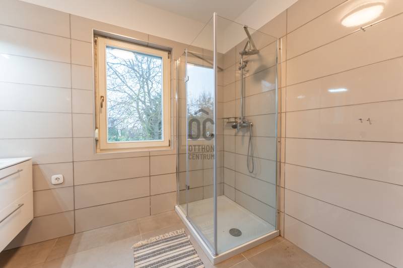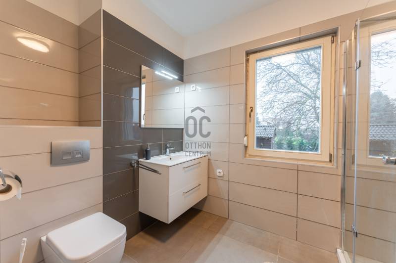 Kinek ajánlomEzt az ingatlant azoknak ajánlom, akik az otthont nem pusztán élettérnek, hanem harmóniát adó helynek tekintik.Akik szeretik, ha reggel a napfény tölti meg a szobákat, ha este a városi fényekkel a horizonton pihennek meg, és fontos számukra a nyugalom, a panoráma és a minőség.Ideális választás családoknak, pároknak, vagy akár elfoglalt szakembereknek, akik egy rendezett, zöldövezeti környezetben szeretnének élni — kompromisszumok nélkül.ElhelyezkedésAz ingatlan Budaörs egyik legkedveltebb, dombos részén található, zöldövezeti, mégis kiválóan megközelíthető környezetben.A városközpont, valamint a legfontosabb bevásárlási lehetőségek – IKEA, Auchan, Tesco, Decathlon, Rossmann, gyógyszertárak – mind néhány perces autóútra elérhetők.Több iskola, óvoda és sportlétesítmény is a közelben található, a tömegközlekedés pedig kényelmesen használható: helyi buszjáratok biztosítanak kapcsolatot a budaörsi központ és Budapest irányába.Az M1–M7 autópályák csomópontja mindössze pár percre található.A környék hangulataA budaörsi dombvidék egyik legcsendesebb és legápoltabb része.A környék atmoszférája nyugalmat és természetközelséget sugároz, miközben modern, igényes családi házak és új építésű társasházak veszik körül.A környék ideális választás azoknak, akik szeretik a reggeli sétákat, a friss levegőt, a csendes esték békéjét, és akik számára fontos, hogy a panoráma valóban elvehetetlen maradjon.Az ingatlanrólA lakás egy kétlakásos társasház felső szintjén helyezkedik el – így teljes intimitást és privát életteret biztosít.A ház elhelyezkedéséből adódóan 180 fokos, körpanorámás kilátás tárul elénk, amely a nappaliból, a teraszról és a kertből is élvezhető.A lakás különlegessége a 33 m²-es, üvegkorlattal ellátott panorámaterasz, ahol minden napszakban más arcát mutatja a kilátás.A tágas, egybenyitott nappali–étkező–konyha térben hatalmas üvegfelületek engedik be a fényt, így a lakás egész nap napfényben úszik.A három hálószoba közül a legnagyobb közvetlen kertkapcsolattal rendelkezik.A házhoz privát úton lehet feljutni, ami biztonságot és nyugalmat ad, a környezet pedig rendezett és igényes.Műszaki felszereltségÉpítés éve: 2018Fa nyílászárók, prémium hőszigetelésselHőszivattyús hűtés–fűtés rendszer, alacsony fenntartási költségekkelBeépített konyhabútor és beépített gardróbszekrényekFrissen tisztított, üres állapot, azonnal költözhetőModern, igényes kivitelezés, időtálló anyaghasználatParkolás és megközelítésA lakáshoz tartozik egy 30 m²-es, zárható, privát garázs, amely kizárólag az ingatlan tulajdonosának használatában van.Ezen felül a telken belül további 2–3 felszíni beállóhely is rendelkezésre áll.A ház privát úton közelíthető meg, ami exkluzivitást és biztonságot nyújt a lakók számára.Ez az otthon egyszerre sugároz letisztultságot, harmóniát és eleganciát – egy hely, ahol minden részlet a kényelmet és a nyugalmat szolgálja.Ha felkeltette az érdeklődését, keressen bizalommal, örömmel mutatom be személyesen is ezt a különleges ingatlant.