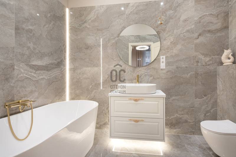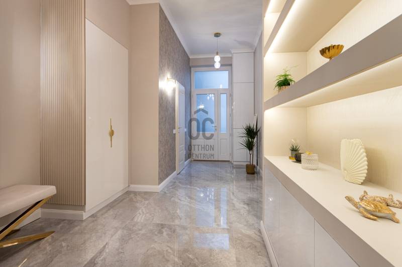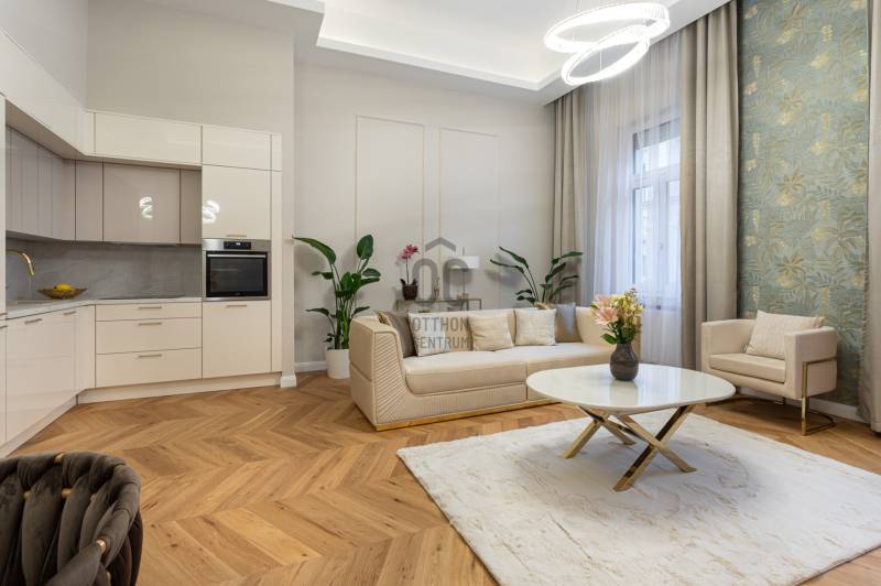V. kerület Szemere utcában, 86 m2-es nappali + 2 hálószobás +gardrób szobás, duplakomfortos, 3. emeleti, utcai nézetű, luxuslakás eladó. Az ingatlan prémium minőségű felújításon esett át, melynek során a legkiválóbb minőségű anyagokat használták fel, a lakás minden részletében az eleganciát tükrözi.Az ingatlan amerikai konyhás nappalival rendelkezik, mindkét hálószobához külön fürdőszoba tartozik: a fő hálószobához egy elegáns káddal, WC-vel és bidével felszerelt fürdőszoba kapcsolódik, míg a második szobához egy zuhanyzós fürdő. Az ingatlan prémium minőségű bútorokkal és gépekkel együtt eladó, így az új tulajdonos azonnal beköltözhet egy teljesen felszerelt, exkluzív otthonba.A teljes körű felújítás során megtörtént a víz- és villanyvezetékek, valamint a fűtéscsövek, radiátorok cseréje. Designer csillárok, beépített szekrények, minőségi szaniterek és prémium burkolatok kerültek beszerelésre. A 4,3 méteres belmagasság igazán légies, tágas hangulatot ad a lakásnak, a chevron mintás tölgyfa parketta eleganciát és egyediséget. A konyha teljesen gépesített, AEG márkájú készülékekkel felszerelt: mosogatógép, hűtő fagyasztóval, sütő, mikró, főzőlap, páraelszívó és mosógép is rendelkezésre áll. A lakás légkondicionált.A társasház kivül, belül kiváló állapotú, az emeletre jutást 2 modern lift segíti. A lépcsőház függőfolyosós, a lakás a függőfolyosó végén található.A közvetlen közelben több busz- és villamosvonal elérhető, amelyek gyors és kényelmes kapcsolatot biztosítanak a város többi részével. Ez a lakás nem csak otthonként, hanem befektetésként is tökéletes választás azok számára, akik a belvárosi luxust és kényelmet keresik. Az ingatlan minden részlete a legmagasabb színvonalat képviseli, így garantáltan megfelel a legigényesebb vásárlók elvárásainak is.Jöjjön és helyezze magát kényelembe új otthonában!Várom megtisztelő hívását a hét minden napján!