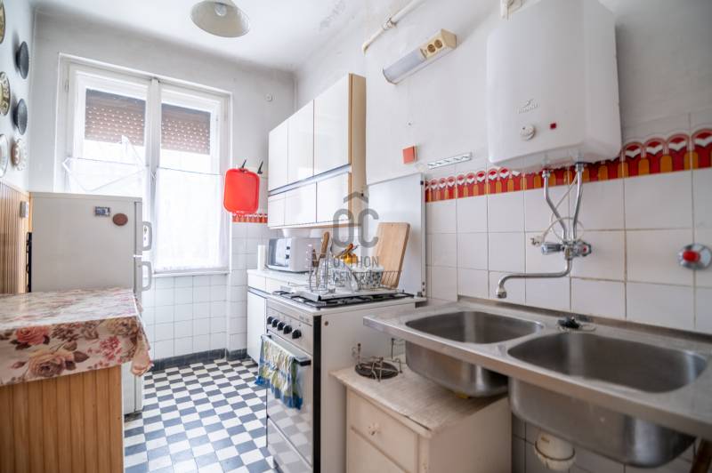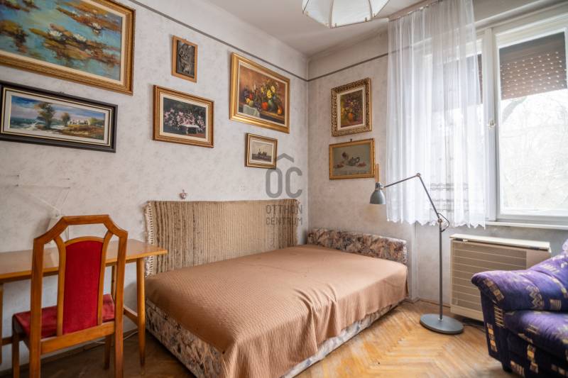 Eladó Budapest XII. kerületében, Németvölgyben, az Alkotás utcában egy 67 m²-es, nappali + 2 kisebb hálószobás, étkező-hallos, erkélyes társasházi lakás egy jó állapotú, lift nélküli téglaépület 1. emeletén. A meghirdetett vételár nem a teljes ingatlanra, hanem a lakás 8/12 tulajdoni hányadára vonatkozik.A lakás teljes mértékben felújítandó. A nappali keleti tájolású, utcai nézetű az Alkotás utcára, míg a két kisebb hálószoba a belső kertre néz. A három szoba mellett külön konyha, fürdőszoba, külön WC, kamra, hall, valamint egy 3 m²-es erkély is tartozik a lakáshoz.A hirdetés „felújítás utáni” AI-látványterveket is tartalmaz január 20-tól, amelyek néhány lehetséges variációt mutatnak be arra, hogyan nézhet ki az ingatlan az új tulajdonos elképzelései szerint.A lakás kiváló lehetőség azok számára, akik a MOM Parktól legfeljebb 250 méterre szeretnének otthont kialakítani, vagy értéknövelő befektetést keresnek Buda egyik legkeresettebb, hosszú távon is értékálló lokációjában. Mivel az ingatlan a Testnevelési Egyetemmel szemben helyezkedik el, kiválóan kiadható. A közelben található a Déli pályaudvar, valamint számos busz- és villamosjárat, amelyek 3 perc gyaloglással elérhetők.A társasház és a lépcsőház állapota jó. Az épület zárt lépcsőházas, közös pincével rendelkezik, valamint a lakáshoz külön tartozik egy 2 m²-es és egy 1 m²-es tároló.A társasház döntött a tető felújításáról, amelynek költsége erre a tulajdoni hányadra vetítve körülbelül 2 millió forint. A felújításhoz a társasház hitelt vesz fel, amelyet a tulajdonosok havi részletekben törlesztenek.A meghirdetett vételár nem a teljes ingatlanra, hanem a lakás 8/12 tulajdoni hányadára vonatkozik. Amennyiben a vevő a másik tulajdonostárs 4/12 tulajdoni hányadát is meg tudja vásárolni, úgy a teljes lakásra hagyományos, piaci alapú lakáshitel is igénybe vehető. Az ingatlan kulcsos, rugalmasan megtekinthető.Az ingatlan az Otthon Centrum Hűség megbízási szerződés keretében kerül értékesítésre, melynek részleteiről kérem, telefonon érdeklődjön.***Ez az ingatlan a \"Hűség csomag\" megbízási portfólióhoz tartozik. Részletek az Otthon Centrum weboldalán.