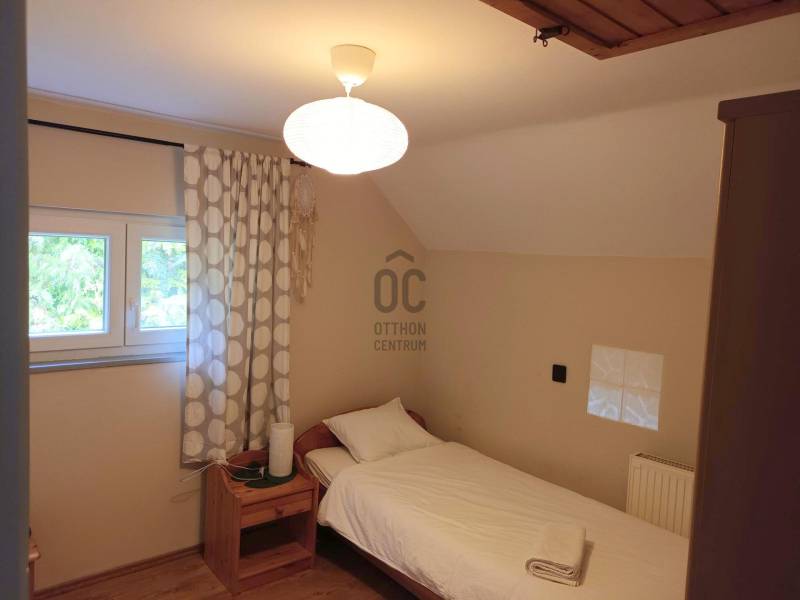 A Balatontól 5 perc sétára, Révfülöp településen kínálom megvételre ezt a két generáció együttélésére is alkalmas ingatlant. A 939 négyzetméteres telken 2 különálló épületet is találunk, egy téglaépítésű családi házat, illetve egy könnyűszerkezetes kisházat.A főépületben a földszinten 1 különnyíló szoba, nappali, fürdőszoba, külön Wc, konyha-étkező helyiségek találhatóak, a tetőtérben 2 különnyíló szoba - kialakított mosdórésszel, illetve közlekedő. A ház szépen felújított, minőségi burkolatokkal van ellátva. Fűtése gázcirkó, radiátoros hőleadással, de található benne egy hangulatos cserépkályha is. Minden helyiségben laminált padlóburkolat van.Az épülethez tartozik egy fedett, 9,14 nm-es terasz is.A kisházban 1 különnyíló szoba, nappali, fürdőszoba-Wc, konyha-étekező helyiségek vannak, illetve itt is találunk egy 15,76 négyzetméteres teraszt. A szoba és a nappali laminált burkolatot kapott, a többi helyiségben járólap van.Az ingatlan elhelyezkedése a településen belül rendkívül kedvező, minden szolgáltatás könnyen elérhető, két utcáról is van bejárata. Akár befektetési célból is tökéletes választás lehet! Révfülöp Balatonfüredtől 24, Keszthelytől 36, Siófoktól 35 km-re található.Amennyiben az ingatlan elnyerte a tetszését, hívjon bizalommal és megtekintésre időpontot egyeztetünk!Szolgáltatásaink körében szakszerű tanácsadással, bank-semleges hitel-ügyintézéssel és kedvező díjszabású ügyvéddel nyújtunk segítséget!