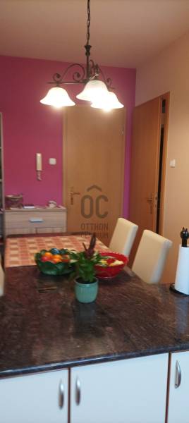 Elegáns otthon várja új lakóit Zalaegerszeg belvárosában.Főbb jellemzői:– A lakás 2 emeleti, 76 nm, praktikus elosztású – világos, amerikai konyhás– külön nyíló kamra– 2 külön nyíló szoba– egy tágas,klímás nappali– fürdőszoba és külön wc. Az ingatlan házközponti(egyedi mérős) fűtéssel rendelkezik,fenntartási költsége alacsony.Nyílászárói (ablakok) műanyagok,hőszigeteltek,redőnnyel felszereltek,az ajtók fából készültek.A szobák burkolata parketta,a közös helyiségeké járólap. A konyha gépesített,a fotókon látható háztartási eszközökkel.A folyosón egy beépített gardrób szekrény található,szemben a fürdőszoba káddal ellátott kényelmet nyújt.Belvárosi elhelyezkedése lehetővé teszi hogy rövid idő alatt elérhető legyen: gyógyszertár,élelmiszerbolt,posta,templom,kulturális–és közigazgatási intézmények.Ha a lakás felkeltette érdeklődését akkor hívjon bizalommal és tekintsük meg együtt ezt a nagyszerű lakást.Hitel ügyintézésben is Otthon vagyunk,ügyvédi szolgáltatást is szívesen nyújtunk kedves ügyfeleink számára.