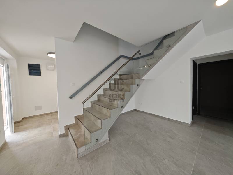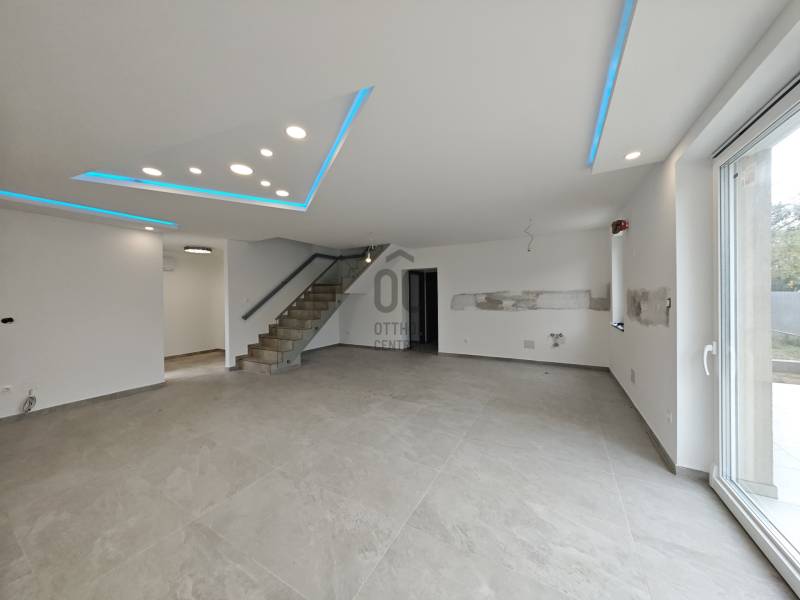 Vecsésen PRÉMIUM kivitelezésű ikerház eladó• újépítésű • nettó 145.38 m2 + 6.25 m2 erkély + 30 m2 terasz • hatalmas amerikai konyhás nappali • LED hangulat világítás• öt hálószoba (egy a földszinten, négy az emeleten)• két fürdőszoba (zuhanyzós és kádas)• fűtése: hőszivattyú, padlófűtés az egész házban• színezett hűtő-fűtő klímák • szennyes ledobó az emeletről• minőségi burkolatok • térkövezett járdák (még kialakítás alatt)• riasztó• telek: 332 m2Kivitelező saját részre épített, de végül nem beköltözött háza eladó tényleg prémium minőségben. Tömegközlekedés 5 perc gyalog 576, 578, vonat: 15-20 perc. Szinte azonnal költözhető!