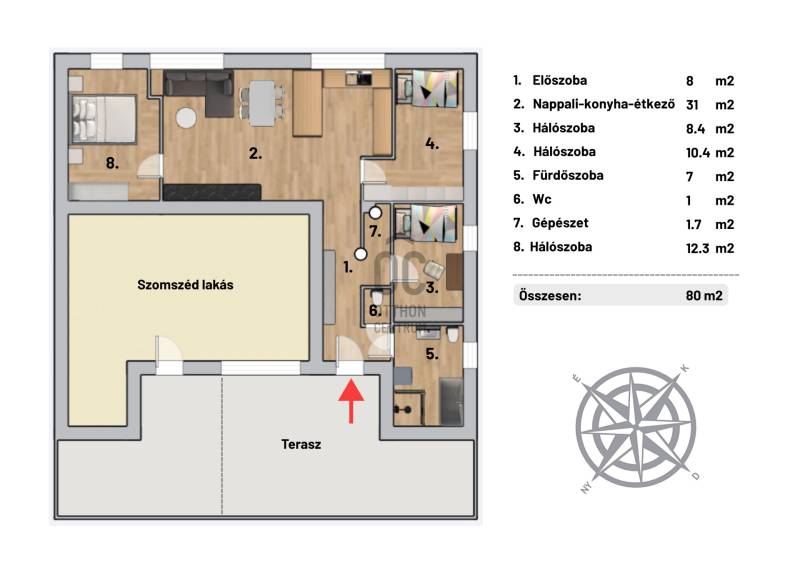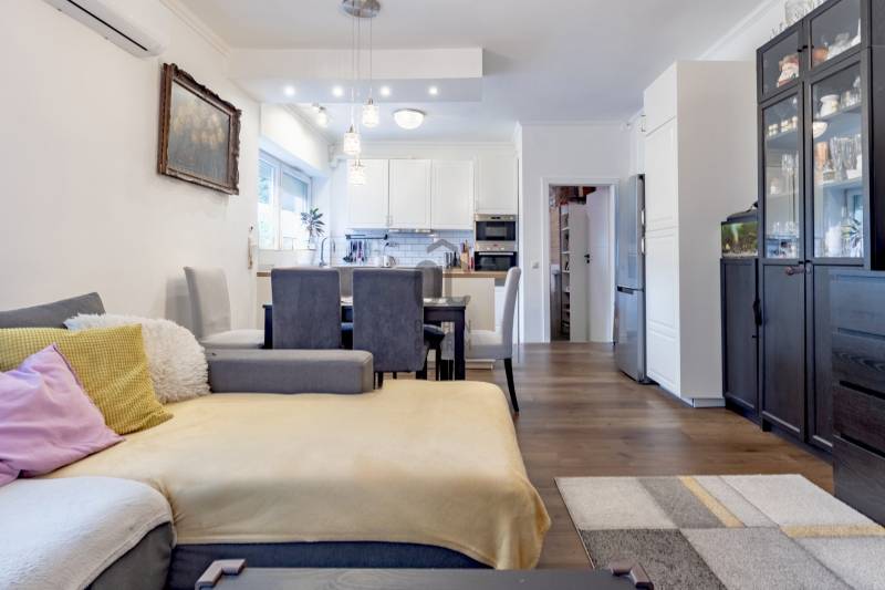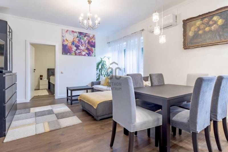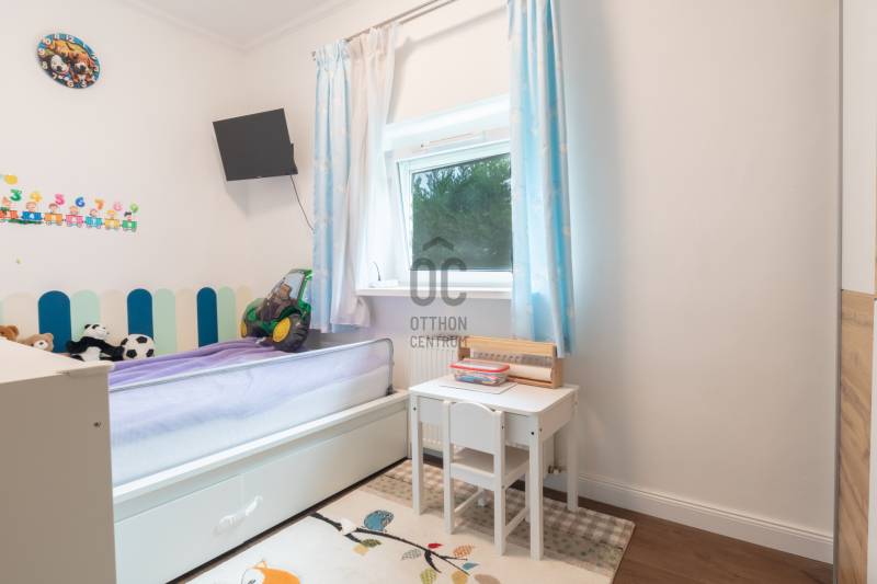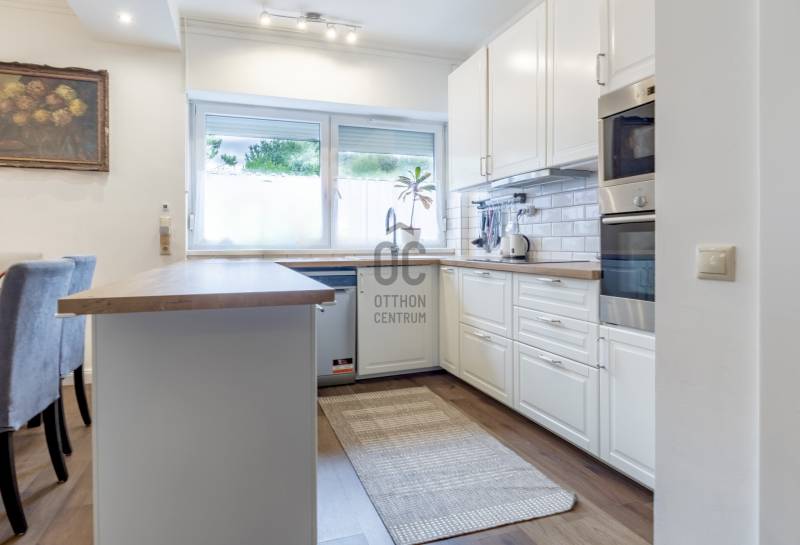 XII. kerületben, Farkasvölgyben, Mártonhegy határán, zöld környezetben keresi új tulajdonosát egy földszinti, 4 szobás, 80 m2-es lakótérrel, 27 m2-es terasszal, kerttel és 2 autóbeálló hellyel rendelkező lakás. Ha jó presztízsű, értékálló környéken szeretné megtalálni hangulatos új otthonát, akkor ezt feltétlenül nézze meg!KÖRNYÉK és KÖZLEKEDÉS:- XII. kerület déli része, Farkasvölgy.- Kifejezetten zöld, jó infrastruktúrával rendelkező, nagyon kedvelt környék.- A lakástól néhány percre elérhető iskola, óvoda, gyógyszertár, zöldséges, játszótér és pékség is.- A MOM Park, a Hegyvidék Központ, az Etele Pláza és Gazdagrét bevásárlási lehetőségei autóval pár perces távolság.- Az 53-as busz 1 perc sétatávolságra van, amellyel Kelenföldön elérhető a 4-es metró.- Márton Áron téren átszállhatunk az 59-es villamosra és a 8-as buszra amelyekkel a belváros könnyen megközelíthető.- Az M1-es és az M7-es autópályák öt percen belül elérhetőek.- A Sas-hegy és a Széchényi-hegy kiránduló útvonalai a közelből indulnak.- Az utcában a parkolás díjmentes.TÁRSASHÁZ:- 1943-ban épült, 1 szintes, 3 lakásos téglaépület.- Műszakilag rendszeresen karbantartott társasház, gondozott kerttel, kulturált lakóközösséggel.- Homlokzata szigetelt, jó állapotú.- A kertben öt gépkocsi részére beálló helyeket alakítottak ki, amelyből kettő tartozik a lakáshoz.LAKÁS:- Földszinti, 80 m2-es, 4 szobás, 27 m2-es terasszal rendelkező, esztétikailag frissen felújított ingatlan.- Felosztása: előszoba, amerikai konyhás nappali és étkező, 3 hálószoba, 1 fürdőszoba-wc, külön wc, tároló.- Tájolása észak-keleti, a nappali és a 12 m2-es hálószoba ablakai a gondozott utcafronti előkertre néznek.- A műanyag nyílászárók hang és hőszigeteltek, elektromos alumínium redőnyök gondoskodnak az árnyékolásról.- Az összes helyiséget vinyl padlóval burkolták, a belmagasság 270 cm.- Fűtését kondenzációs kazán látja el, a hő-leadást radiátorok biztosítják, a fürdőszobába törölközőszárítót is szereltek.- A hűtésről hűtő-fűtő klíma gondoskodik.- A vastag falak télen-nyáron tartják az ideális hőmérsékletet.- A villany-, a víz-, és a gázfogyasztás egyedi mérés alapján fizetendő, a lakás fenntartási költsége kedvező.- Az ingatlanhoz tartozik egy 27 m2-es terasz, amelyről néhány lépcső vezet a kertbe.- Ezenkívül az alagsorban egy körülbelül 6 m2-es tároló is rendelkezésre áll.AZ INGATLAN MEGTEKINTHETŐ:- Személyesen- Online személyes bejelentkezésselFINANSZÍROZÁSI KÉRDÉSEKBEN – ONLINE IS – SEGÍTÜNK!- Bank-független hitelcenterünk díjmentesen versenyezteti az összes bank és hitelintézet ajánlatát.- Önnek csak annyi a dolga, hogy egyeztet munkatársunkkal, majd kiválasztja a hosszú távon is legkedvezőbb konstrukciót.- Szakértőink 20+ év tapasztalattal, fogyasztóbarát lakáshitelekkel, babaváró hitellel és teljes körű CSOK Plusz és OTTHON START program ügyintézéssel várják.- Időpont-egyeztetéssel munkaidő után is elérhetők.Hangulatos és igényes ingatlan, ajánlom korosztálytól függetlenül kiváló adottságai miatt.Kérdés esetén és megtekintési időponttal kapcsolatban várom hívását!