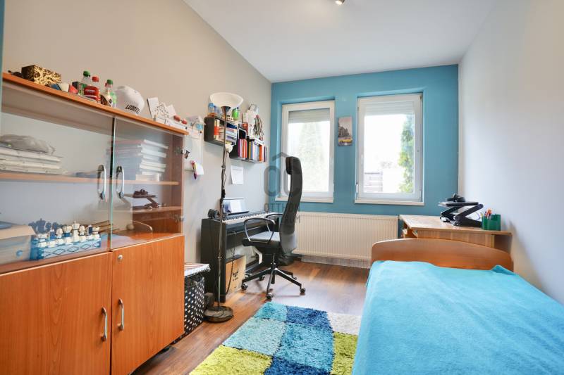 Eladó sorba került egy 110 m²-es ikerházfél Dunakeszi Alsó egyik csendes utcájában, 6 perc sétára a vasútállomástól és buszmegállótól.A Szabadságliget egyik legkedveltebb, csendes, átmenő forgalomtól mentes utcájában helyezkedik el ez a modern, 90 m²-es téglaépítésű ikerházfél, amelyhez egy 13,5 m²-es fűthető télikert, valamint a kertben egy különálló, összkomfortos, 20 m²-es könnyűszerkezetes apartmanház is tartozik.A FŐÉPŰET:A ház 2015-ben épült, 10 cm-es külső hőszigeteléssel, cseréptetővel, műanyag nyílászárókkal, minőségi burkolatokkal, mozgás- és nyitásérzékelő riasztórendszerrel. A melegvízről és a fűtésről Ariston kombi cirkó kazán, a hűtésről és rásegítő fűtésről Gree hűtő-fűtő klíma gondoskodik. A radiátoros és padlófűtés kombinációja kellemes, energiatakarékos hőérzetet biztosít, minden helyiségben redőny van, az ablakokon pedig szúnyogháló. A MELLÉKÉPÜLET:A kert hátsó részén található egy könnyűszerkezetes, hőszigetelt és teljesen önálló 20 nm-es vendégház, amely:- saját szobával,- külön konyhával,- zuhanyzós, beépített WC-vel felszerelt fürdővel,- valamint elektromos padlófűtéssel és klíma előkészítéssel rendelkezik.A melegvizet itt is Ariston, víztartályos villanybojler biztosítja, így az épület teljesen független a főépület rendszereitől. A vendégházhoz tartozik egy 17 m²-es fedett terasz, valamint egy füvesített, sziklakertes pihenő- és sütögető rész is.RENDEZETT, GONDOZOTT KERT:- automata öntözőrendszer- kerti csap- térkövezett, napelemes megvilágított közlekedőfelületek- 3 autó számára fedett beálló közvetlenül a ház mellett- szépen karbantartott gyep, dísznövényekkel beültetett magaságyás, sziklakert és 10-15 éves, magas tujákKIVÁLÓ KÖZLEKEDÉS:- vonattal 18 perc alatt elérhető a Nyugati pályaudvar,- busszal 3 perc Újpest–Káposztásmegyer,- autóval néhány perc alatt elérhető az M2-es, M3-as és az M0-s autópálya.Iá.: 169,5 M Ft.