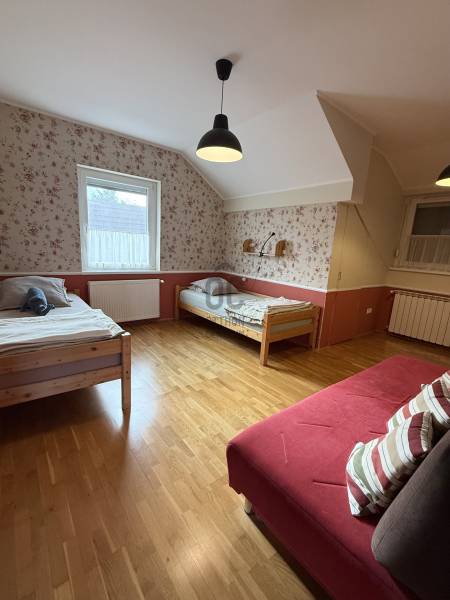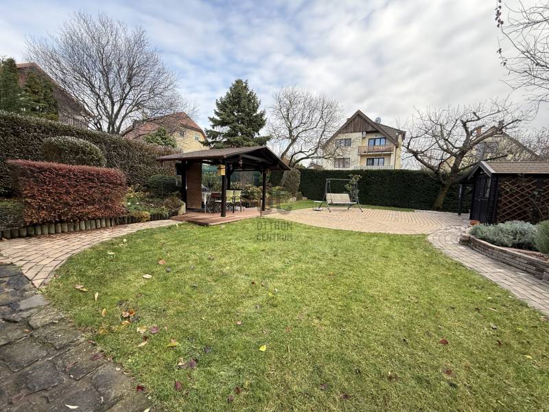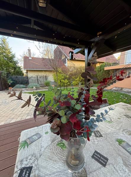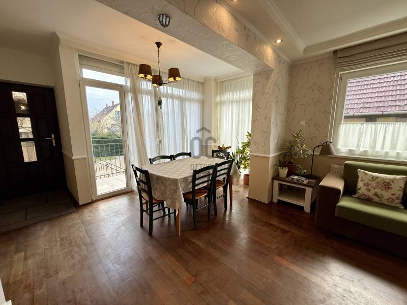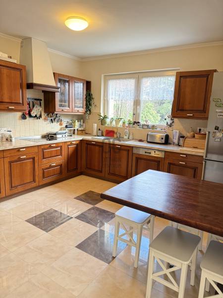Különleges lehetőség, egy igazán otthonos ház várja Önt Budaörs csendes, kertvárosi részén.Az utcán sétálva nem is gondolná a kedves érdeklődő micsoda kincset rejt a kerítés. Az alsó szintjén található egy közvetlen kertkapcsolatos, nappali és egy hálószobás kialakítású lakás tágas étkezővel, konyhával, fürdőszobával és egy tároló helyiséggel. Külső lépcsőn jutunk fel a felső, belső kétszintes, átgondolt kialakítású, teraszos lakrészbe. Itt egy nagy ablakos étkezőbe érkezünk, a hatalmas nappali mindig fényárban úszik. A konyha a lakás sarkában található, kamrával, kicsit szeparáltan a többi helyiségtől, így mind az amerikai konyha, mind a zárt konyha előnyét élvezheti a tulajdonosa. Ezen a szinten még egy fürdőszoba és egy dolgozószoba található. Belső lépcsőn jutunk fel a felső szintre, ahol 3 hálószoba, egy fürdőszoba lett kialakítva. Erkélyek, teraszok minden szinten kapcsolódnak szobákhoz.Ez a kitűnő állapotú, szuper beosztású, hangulatos, kétgenerációs családiház sok lehetőséget rejt. A házban összesen hét szoba található, így bőséges hely áll rendelkezésre a család minden tagja számára, legyen szó akár gyerekszobákról, dolgozószobáról vagy vendégszobáról. A három fürdőszoba pedig garantálja, hogy a reggeli rohanás során senkinek ne kelljen várakoznia. A gázfűtés és a klímaberendezés biztosítja a megfelelő hőmérsékletet egész évben. A ház kertje varázslatos, intim, praktikus terekkel, szaletlivel, tárolóval, mely tökéletes helyszínt nyújt a szabadidős tevékenységekhez, családi összejövetelekhez. A házhoz elektromos autó töltési lehetőség is tartozik, amely a modern kor igényeit szolgálja ki. Ez a kétgenerációs ház tökéletes választás összeköltözőknek, önállósodóknak, otthon dolgozóknak, vállalkozóknak egyaránt.Méretét tekintve pont jó azt gondolom mindenkinek, nem hatalmas, mégis tágas, a kertje sem óriás, de remekül elfér benne minden (akár egy medence is ), ideális annak, aki Budapesthez közel, zöld övezetben, csendes környezetben képzeli el új otthonát! Budaörs nemcsak a zöld környezetéről, hanem kitűnő közlekedési lehetőségeiről is híres. Az ingatlan könnyen megközelíthető autóval, a közeli főutaknak köszönhetően, de a tömegközlekedés is jól kiépített, így a főváros gyorsan elérhető. A csendes környék biztonságos, ideális helyszín a gyerekek számára, ahol szabadon játszhatnak, felfedezhetik a természetet. A környék számos előnnyel rendelkezik, hiszen a közelben található iskolák, óvodák és bevásárlási lehetőségek is, így mindennapi szükségletei könnyen kielégíthetők. A zöld területek, parkok és játszóterek pedig remek lehetőséget biztosítanak a szabadidő eltöltésére, legyen szó akár sétáról, kerékpározásról vagy piknikezésről.