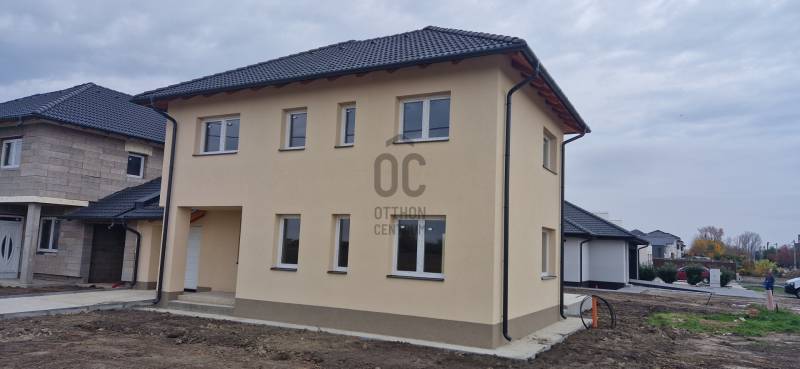 Debrecenben a Tégláskert új házakkal beépült részén, a Gázvezeték utcai forgalomtól távol, eladó egy nettó 187 m2-es, nappali-amerikai konyha + 5 szobás intim ikerház, ahol csak a garázsok érnek össze, de dupla falazattal és köztük hanggátló szigeteléssel, közel 500 m2 telekrésszel.A kivitelezés jelenleg szerkezetkész állapotban van, külső vakolás kész, a színezés után a belső munkák folytatódnak. A nyílászárók beépítésre kerültek és a tető is elkészült. A végleges belső kialakítás jelenleg még változtatható, igény szerinti helyiséglista megvalósítható. Alapból két fürdőszoba lett tervezve és három WC, de a nappali + 5 szobához az emeleten kialakítható egy harmadik fürdőszoba is, épített zuhanyzóval vagy káddal is. Az ár kulcsrakész állapotot takar, amelybe 5 kW napelemes rendszer, 12 kW hőszivattyús rendszer, térkőburkolatok és elektromos autó töltő állomás kiépítése is beletartozik. Részletes műszaki tartalommal és megtekintési időponttal kapcsolatban várjuk hívását a hét minden napján! Az ingatlanból az adásvételi szerződés megkötését követően 4 hónap múlva új otthona lehet!Állami támogatások, CSOK+, OSP (3%), babaváró igényelhetők, díjtalanul intézzük!
