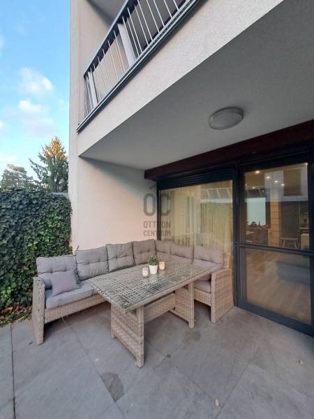 Eladó Debrecen legexkluzívabb lakóparkjában, a Bem-lakóparkban, a Nagyerdő csendes és zöld övezetében egy 2017. évben épült, liftes társasházban egy 62,66 nm-es, nappali plusz 2 szobás, földszintes, luxus penthouse lakás egy 13,02 nm-es terasszal és saját 68,57 nm-es műfüves kerttel.A lakás elrendezése ideális, a központi helyiség a tágas nappali, amelyből közvetlenül elérhető az amerikai konyha, amely a családi együttlétek és baráti összejövetelek valódi középpontjául szolgálhat.A konyhába egyedi tervezésű gépesített konyhabútor (főzőlap, sütő, mikró, mosogatógép, hűtő, elszívó) került beépítésre. Az egyik szobában egy hatalmas méretű, praktikus belső elrendezéssel bíró gardróbot alakítottak ki. A fürdőszobába nívós burkolatok és szaniterek kerültek. A prémium kivitelezés, a beépített bútorok és szekrények, valamint a LED hangulatvilágítás mind hozzájárulnak ahhoz, hogy otthona stílusos és kényelmes legyen.A szobákba elektromos alumínium redőnyök, szúnyoghálóval ellátott három rétegű alumínium nyílászárók kerültek. A lakás fűtése hőszivattyúval, mennyezet hűtés- fűtéssel, klímával, a fürdőszobában padlófűtéssel történik.A fenntartási költségek kedvezőek a hőszivattyús hűtés-fűtés rendszer miatt. A lakásban nyáron a kellemes hőmérsékletet a klíma biztosítja,A lakás különlegessége a 81,59 nm-es nagyságú kertkapcsolat ( terasz és kert együtt) amely lehetőséget biztosít a pihenésre, családi összejövetelekre vagy akár egy esti grillezésre is. A környék biztonságos és csendes, ideális választás családok számára, akik értékelik a nyugalmat és a zöld környezetet. Az ingatlan nemcsak egy új otthont, hanem egy életstílust is kínál.A lakáshoz vásárolható egy 5,85 nm-es nagyságú tároló és egy teremgarázs beálló is plusz 15.000.000 Ft -ért.A lakópark nagyfokú biztonságot kínál az ott élők részére, tekintettel arra, hogy minden lakáshoz kiépített beltéri és kültéri kamerarendszert telepítettek. A közlekedés kitűnő, a város tömegközlekedési hálózata ( villamos, busz) könnyedén elérhető.Bízom benne, hogy ez a különleges lakás felkeltette érdeklődését.További kérdésekkel és megtekintési időponttal kapcsolatban várjuk hívását a hét minden napján!