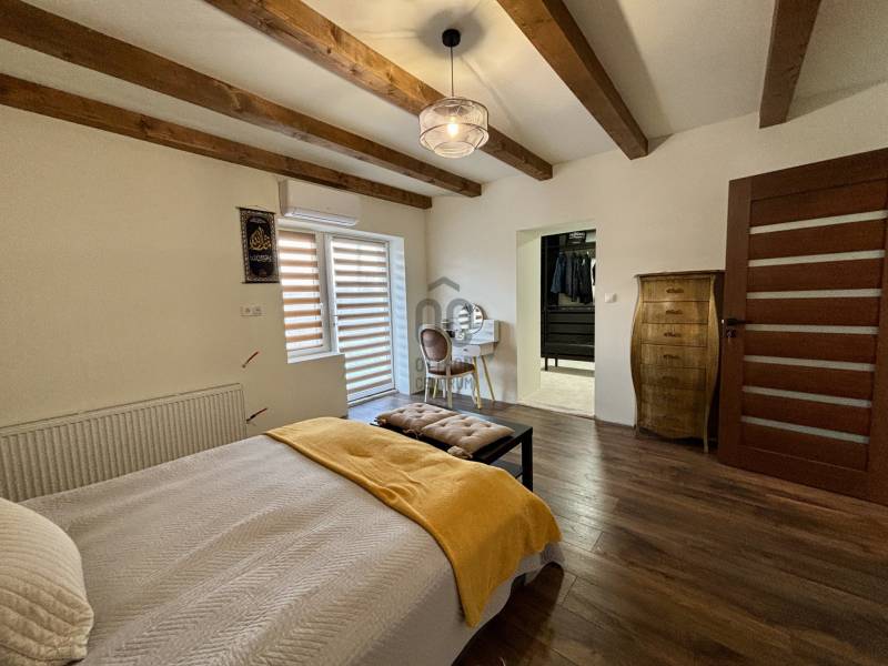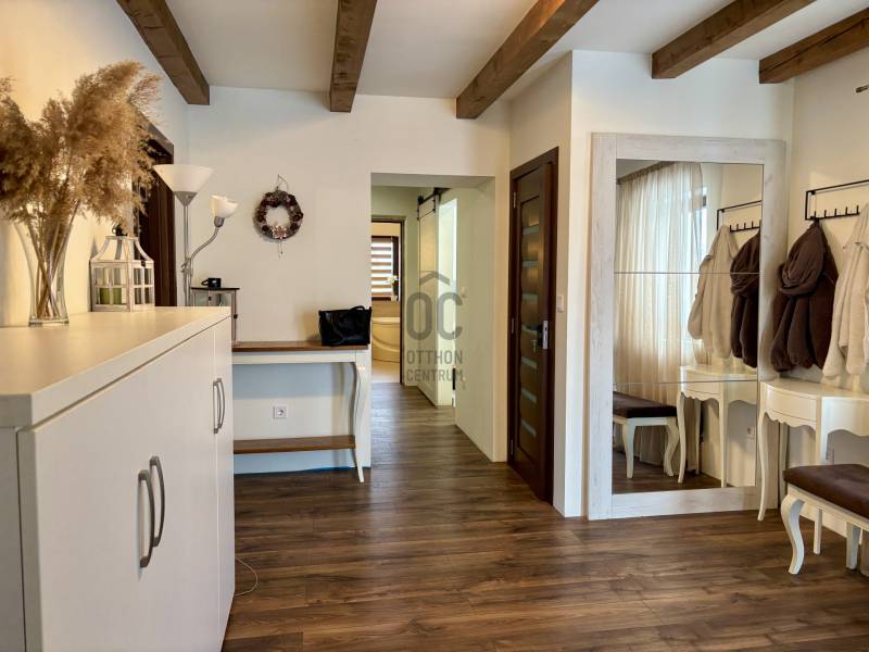 Debrecen egyik csendes, zöldövezeti részén, Halápon kínálunk megvételre egy igényesen megújított és kibővített családi házat, amely a modern műszaki megoldásokat ötvözi a kényelmes, élhető terek előnyeivel. Az ingatlan ideális választás azok számára, akik nem szeretnének kompromisszumot kötni a város közelsége és a nyugodt lakókörnyezet között.A 120 m²-es lakótér jelenleg nappali-központú kialakítással rendelkezik, a belső elrendezés pedig igény szerint több hálószobás elosztásra is alakítható. A kivitelezés során hangsúlyt kapott az energiahatékonyság, a tartósság és a minőségi anyaghasználat, így az ingatlan hosszú távon is értékálló megoldást kínál.Főbb paraméterek:- Nappali + 2 hálószoba + gardrób - 120 m² lakótér- 1017 m²-es, tágas telek melléképületekkelKiemelt műszaki tartalom:- Hőszigetelt, Porotherm 30-as falazat- Új tetőszerkezet 30 cm hőszigeteléssel- Teljesen új villamoshálózat (3×16 A)- Korszerű nyílászárók kiváló hő- és hangszigeteléssel- Prémium burkolatok és igényes belső kialakítás- Vízteres kandalló, padlófűtés és radiátoros fűtési rendszer kombinációja- Inverteres klímák a komfortos hőmérsékletért (3,5 kW/db)- 70 méteres fúrt kútA telek gondozott, melléképületekkel és új kerítéssel határolt, így akár tárolásra, akár további hasznosításra is kiválóan alkalmas.További előnyök:- Rövid határidővel költözhető- Kisebb belvárosi lakás beszámítása megoldhatóEz az otthon ideális választás mindazoknak, akik minőségi életteret, nyugalmat és értékálló befektetést keresnek Debrecen közelében.⚠️ Az ingatlan nem finanszírozható hitelből.Megtekintéshez és további információért keressen bizalommal!