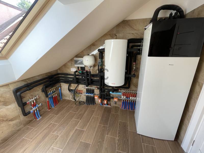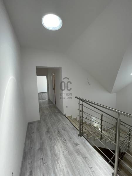 Debrecen frekventált övezetében, Nagyerdei környezetben várja új tulajdonosát ez a 2024-es, új építésű, nettó 187 m2-es, hatalmas, nagy belmagassággal rendelkező nappali+ 2 hálószobás magas műszaki tartalommal megépített, energia takarékos lakóingatlan, mely használatbavételi engedéllyel rendelkezik.Az ingatlan zártsorú beépítéssel, 349 m2-es telken épült, A + energia besorolású, földszint + emelet kivitelű.Minimális fenntartási költsége többek között a H tarifára csatlakoztatott Daikin hőszivattyúnak köszönhető, mely biztosítja az ingatlan hűtését és fűtését, padló, fal, mennyezet megoldással, továbbá szigetelt falainak és felső kategóriás külső nyílászáróinak, mely háromrétegű edzett üvegezéssel, rovarhálóval, részben távirányítható rolóval ellátott. Az ingatlan 10 kW-os napelem rendszer fogadására előkészített.Földszint helyiségei: nagyméretű nappali- étkező- konyha+ kamra, melynél a nappali igény szerint galériázható a nagy belmagasságnak köszönhetően, a nappaliból megközelíthető a polikarbonáttal fedett terasz, továbbá épített zuhanyzós fürdőszoba mellékhelyiséggel, MOFÉM csaptelepekkel.Emelet helyiségei: 2 hálószoba+ 1 gardrób, sarokkádas fürdőszoba WC- vel, gépészetnek kialakított helyiség mosókonyhával.Az ingatlanhoz tartozik egy 20 m2- es gépkocsibeálló HÖRMANN távirányítható szekcionált kapuval ellátva, elektromos autó töltésére alkalmas előkészítéssel, az udvaron több autó számára parkolási lehetőséggel, valamint az udvarról megközelíthető, pince szinten lévő tároló is.Azonnal birtokba vehető!További kérdéssel kapcsolatban keressen bizalommal!