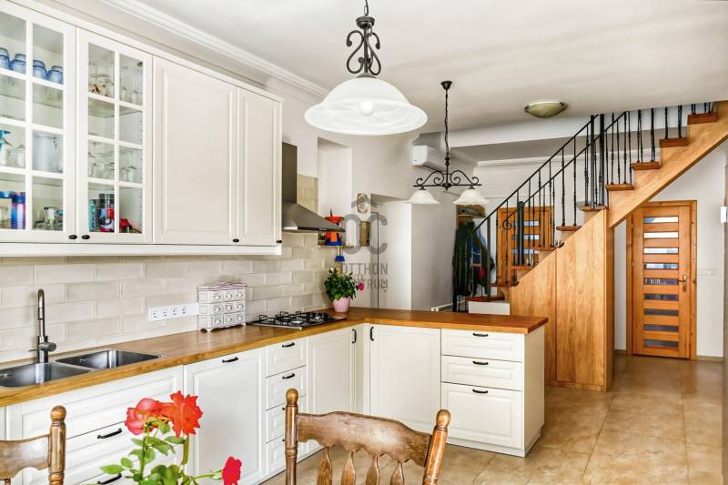 Ez a ház valóban minden korosztálynak ideális választás: fiatal pároknak, családalapítóknak és nagycsaládosoknak is kényelmes, hiszen a tágas belső terek és a jól kialakított tetőtér minden igényt kiszolgál.Ha olyan otthont keresel, ahol minden részletre figyeltek, akkor megtaláltad! Ez a masszív, kőből épült családi ház az elmúlt 5 évben teljes körű felújításon esett át:• új tető, szigetelés és villámvédelem• modern nyílászárók (háromrétegű üvegezés)• igényes hideg- és melegburkolatok• stílusos, gépesített IKEA konyha garanciávalAz alsó szinten nappali, étkezős konyha, hálószoba, fürdő és közvetlen teraszkapcsolat biztosítja a kényelmet. A 37 m²-es terasz leanderekkel, kerti bútorral és napernyővel a nyári esték tökéletes helyszíne – innen hallhatjuk a szarvasbőgést vagy épp gyönyörködhetünk a csillaghullásban..!A tetőtérből részleges panoráma tárul elénk, a földszinten pedig dupla garázs, műhely, tárolók és kazánház is helyet kapott. A fűtésről gázkazán, hűtő-fűtő klíma és egy hangulatos téglakályha gondoskodik.A parkosított, saroktelek diófával, tujákkal, játszótérrel (hinta, csúszda) teljesen körbejárható és gondozott – ideális családoknak.Előnyök röviden:• kétgenerációssá alakítható• élhető környék, barátságos szomszédság• minden gyalogosan elérhető: iskola, óvoda, buszmegálló, patika, bolt• teljes közmű, klíma, redőnyökA ház egy forgalmasabb úton helyezkedik el – viszont épp emiatt kiemelkedő a közlekedés és a lokáció előnye. Innen minden könnyen elérhető: a belváros, a HÉV, iskolák, óvodák, boltok, patika.Ez a ház nemcsak egy ingatlan – hanem egy olyan otthon, amely egyszerre ad teret a családi élethez, a mindennapi kényelemhez és a praktikus megoldásokhoz.Ha Szentendrén keresel egy tágas, igényesen felújított házat, amely minden életszakaszban jó választás, itt a lehetőség!Ne maradj le róla! Keress bizalommal a részletekért és a megtekintésért! #Szentendre #CsaládiHáz #FelújítottOtthon #TágasTerek #NagyTerasszal #KényelmesÉlet #TopLokáció #EladóHáz#SzentendreLiving #FamilyHome #RenovatedHouse #SpaciousLiving #BigTerrace #ComfortAndStyle #GreatLocation #DreamHome